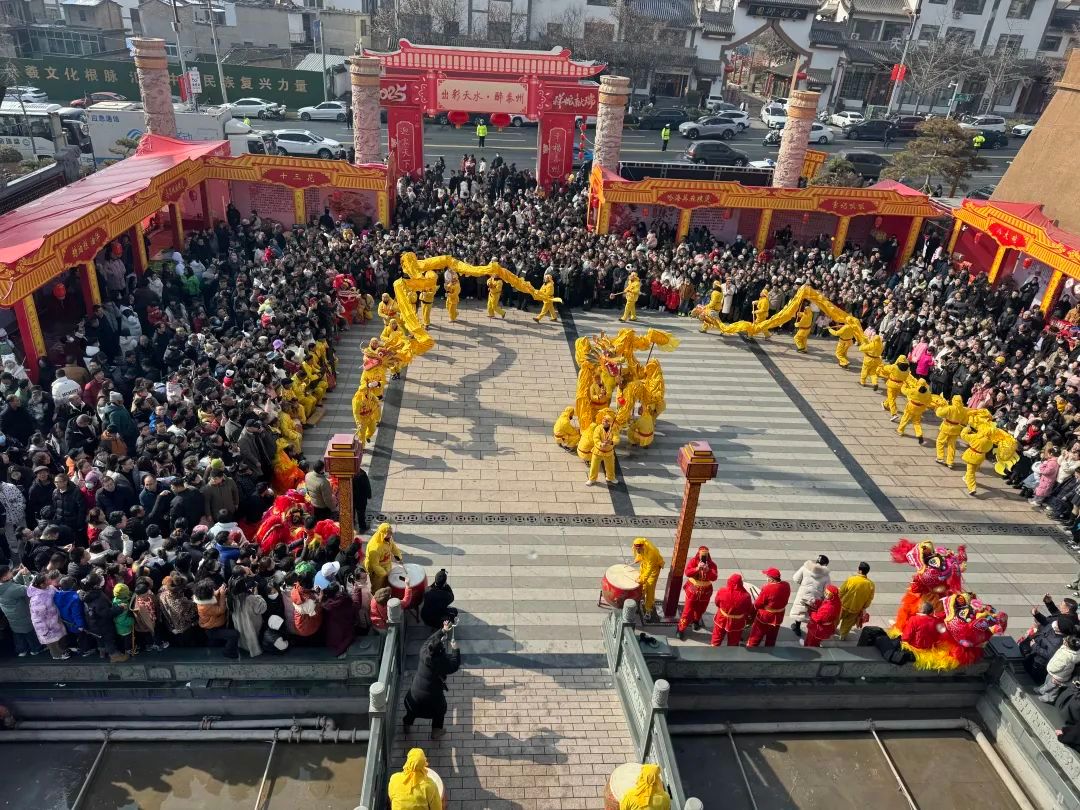 【非遗表演,热闹迎新春】活动现场还上演了精彩的“秦州鞭杆舞”和“舞龙舞狮”表演。鞭杆舞刚柔并济,舞者们手持长鞭,动作矫健,展现了力与美的完美结合;舞龙舞狮锣鼓喧天,龙腾狮跃,为新春增添了浓浓的喜庆氛围。观众们纷纷拿出手机记录下这热闹的场景,现场掌声不断,欢呼声此起彼伏。