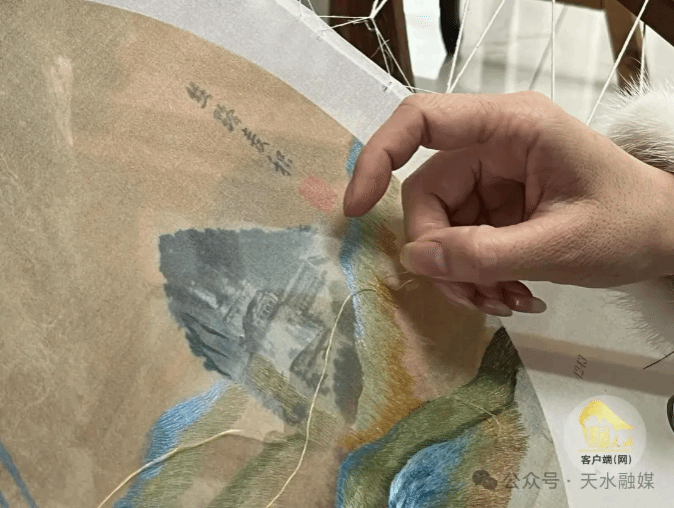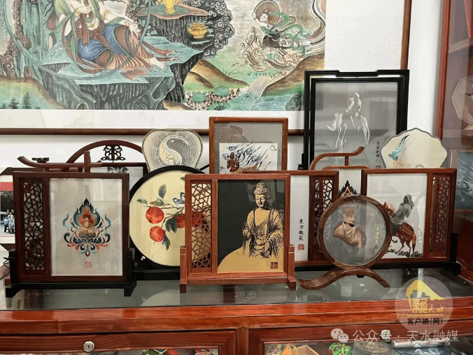 曹苑春的绣艺人生始于家庭环境的耳濡目染。母亲是附近有名的巧绣娘,父亲是麦积山石窟文物修复师,这使她从小受到刺绣技艺和石窟艺术的双重熏陶。