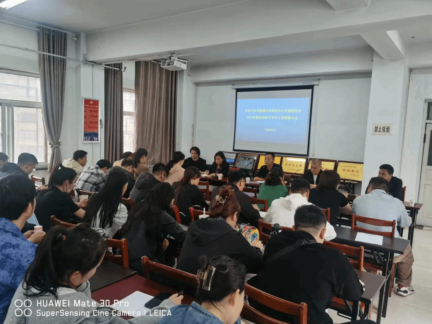 会议由党支部副书记李尊智同志主持,本次会议共有八项议程。首先,由蔡娟同志领学了《中国共产党纪律处分条例》;大会第二项观看警示教育片;大会第三项由王时飞同志宣读天水公祭伏羲大典组委会办公室文件《天水公祭伏羲大典组委会办公室关于印发2024(甲辰)年公祭中华人文始祖伏羲大典实施方案的通知》(组委会办发[2024]8号);大会第四项杨涛同志宣读天水市文化和旅游局工作提醒;大会第五项张文静同志宣读中共天水市歌舞艺术研究中心支部委员会文件《中共天水市歌舞艺术研究中心支部委员会关于返聘李尊智同志担任副书记的通知》(天市歌研党发[2024]2号);大会第六项李尊智同志宣读天水市歌舞艺术研究中心文件《天水市歌舞艺术研究中心关于成立采购工作领导小组的通知》(天市歌研发[2024]17号);大会第七项各分管领导总结上半年工作并安排近期工作;大会第八项刘万翔同志作动员讲话。会上各位分管领导依次就所分管的节会期间的任务进行了分解安排如下: