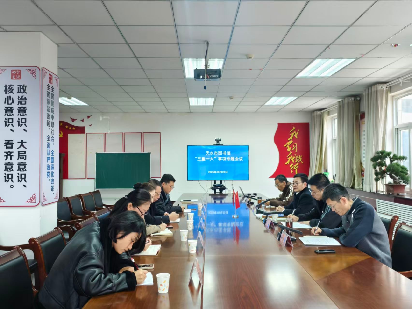 2025年10月20日上午,市图书馆召开“三重一大”专题工作会议,邀请天水市纪委监委派驻市委宣传部纪检监察组副组长王浩莅临会场进行指导。会议由天水市图书馆馆长朱耀宇主持,市图书馆领导班子成员、支部支委委员和财务人员参加。本次会议聚焦图书馆文创产品的研发与推广工作,旨在通过集体研讨、科学决策,进一步明确发展方向,凝聚发展共识,开创图书馆文创事业新局面。