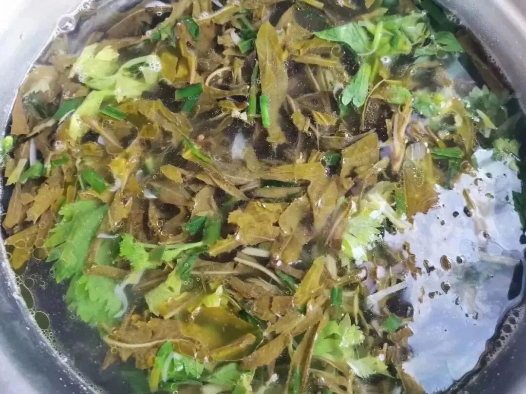这浆水面中最重要的是酸菜,浆水面离了酸菜就像一个人少了魂一样。端上一碗浆水面,上面载浮载沉着辣椒油和野菜的根茎,喝一口,辣味下有一种掩藏不住的清香。