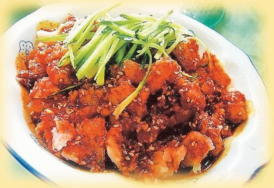 天水呱呱是一种甘肃天水的传统风味小吃,最早产生于西汉时期,是用当地特产的一种被称作荞麦的淀粉制作的。以香、辣、绵、软着称,深受当地人们的喜爱,被称为“秦州第一美食”。