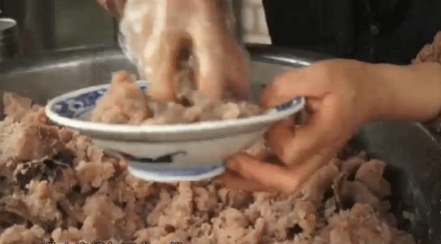 呱呱淀粉经过长时间的热力作用后,由入锅时的白色变成了粉色,色泽往往决定着呱呱出锅的时间,以最快的速度将呱呱铲出来,否则就会变色。