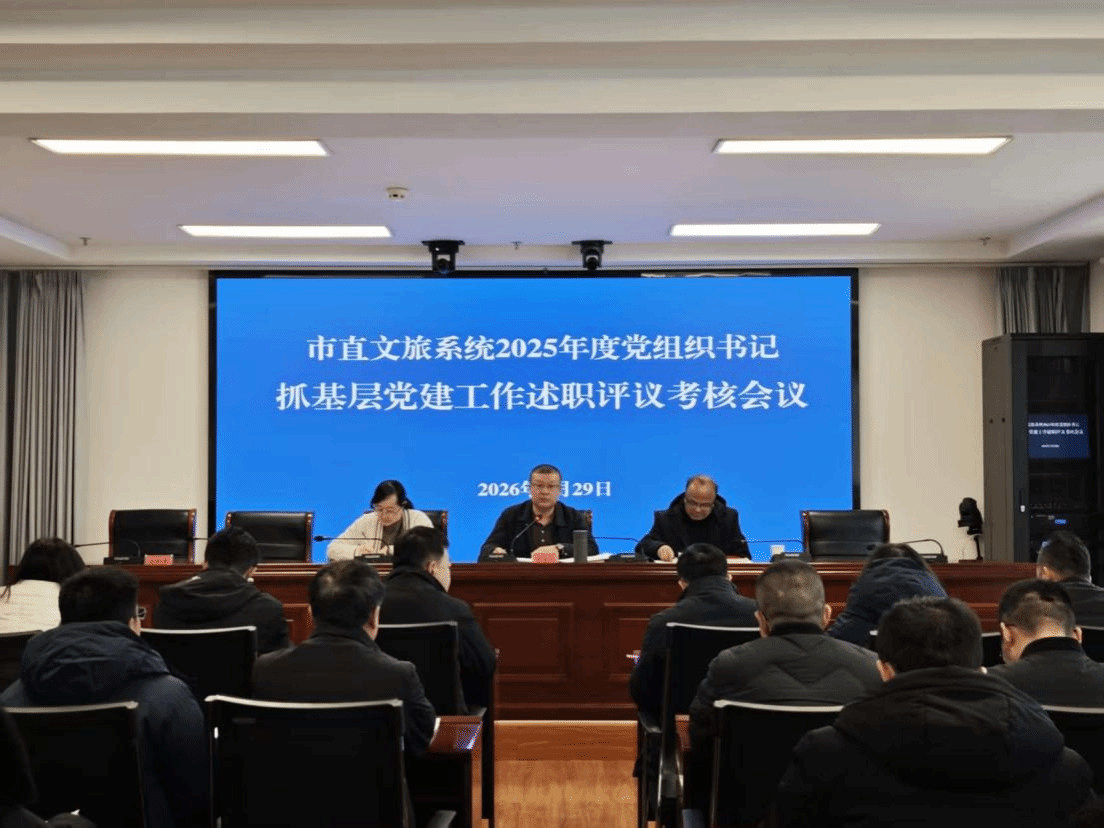1月29日,市文旅局召开市直文旅系统2025年度党组织书记抓基层党建工作述职评议考核会议。局直属机关党委委员,局机关、局属各单位党支部(总支)书记,局机关各科室负责人,各基层党组织党务干部40余人参加会议。