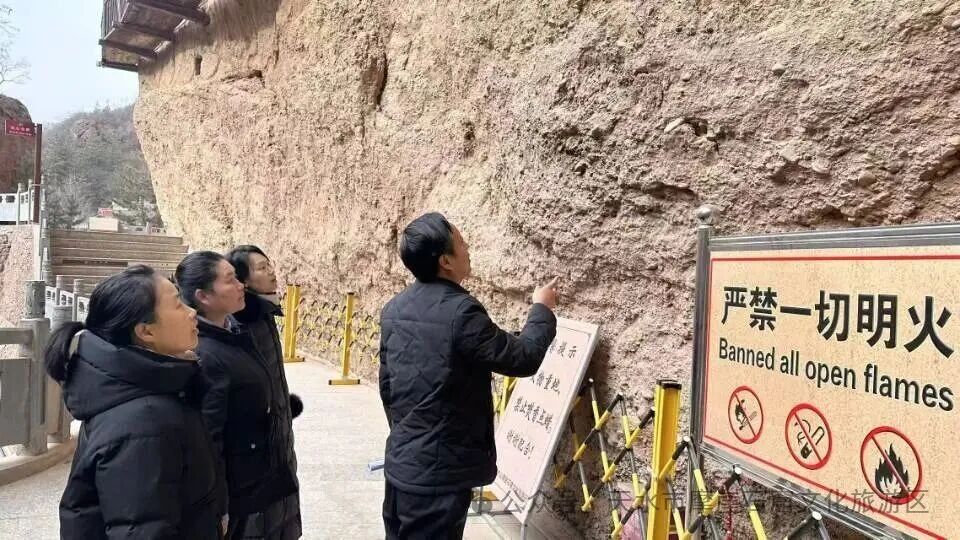 注重多维防控,构建安全保障防护网。景区将党建工作深度融入文化遗产保护全过程。将党员分配到四个文保单元作为单元长,根据不同区域,重点开展消防设施、疏散通道、文物安全等隐患排查,联动处理矛盾纠纷等问题。围绕旅游运营全流程监管,例行按月、节前、逢会“三必查”强化安全监管,强化重点文物保护单位日常管理和值班值守,建立“每日排查上报”机制,聚焦文物古建、宗教场所等核心区域,完善监控监测台账。全年开展多部门联合综合性演练2次,组织常规性应急演练4次。在节假日重要节点,统筹协调县公安、应急、交警、卫健、消防等多部门,以及洛门、榆盘、嘴头乡镇,协同配合,通力合作,各负其责,为景区游客营造一个安全、祥和、秩序井然的旅游环境。