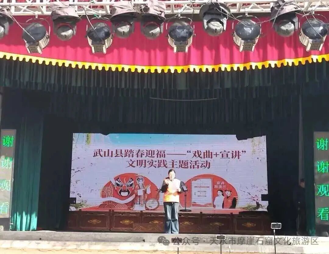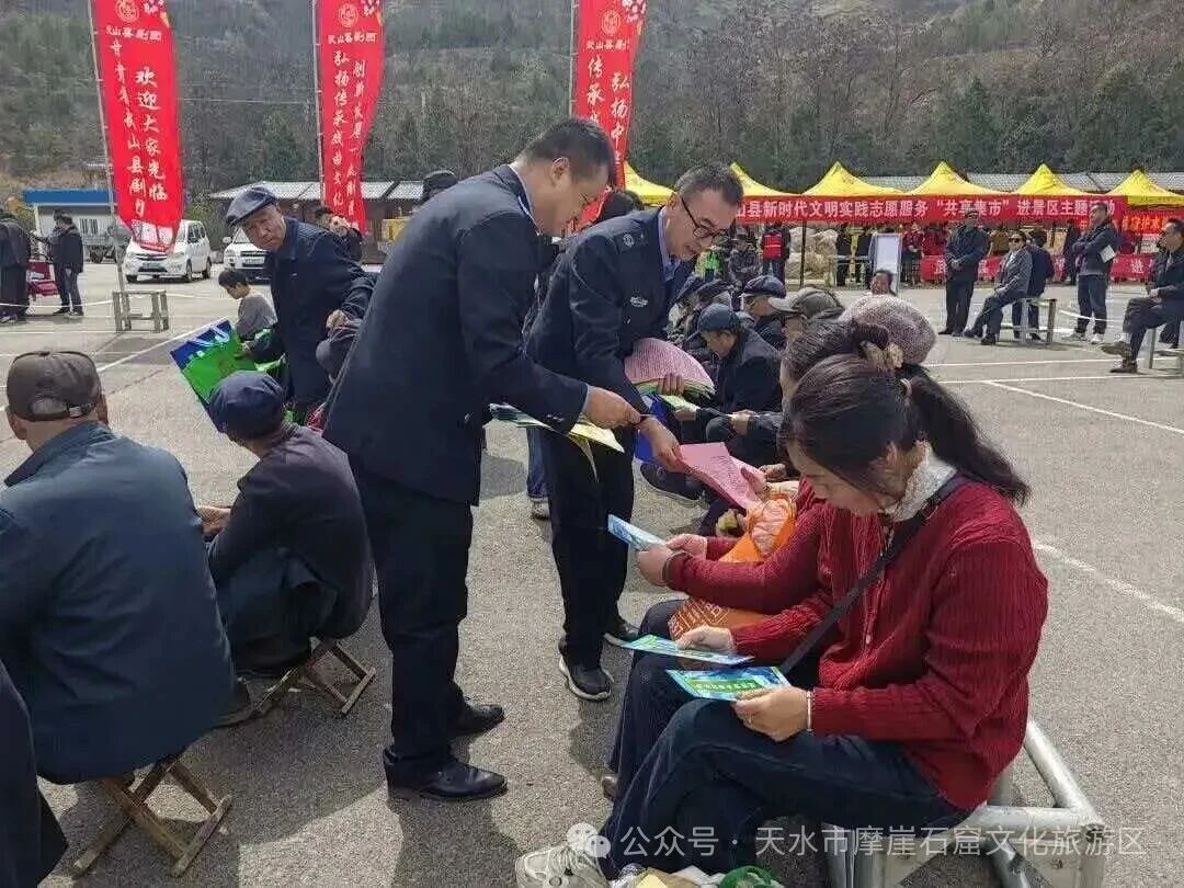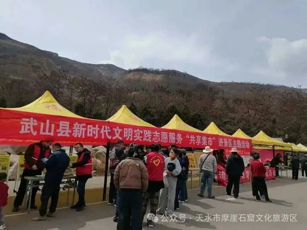 活动丰富聚人气。活动期间景区内国家级非遗武山旋鼓舞、武术展演、武山秧歌、戏曲展演等特色活动轮番上阵,联合多部门开展新时代文明实践志愿服务“共享集市”主题活动,采用“戏曲+宣讲”模式,将民法典普及、应急安全、文明旅游等内容与文化体验有机结合。同时,景区充分利用红色志愿服务队力量,在景区核心区域为游客普及《新文物保护法》,并且开展志愿讲解服务,引导广大游客自觉爱护文物、文明游览,通过让游客在赏春景、逛石窟的同时,沉浸式感受武山本土文化魅力,让文明旅游理念入脑入心。