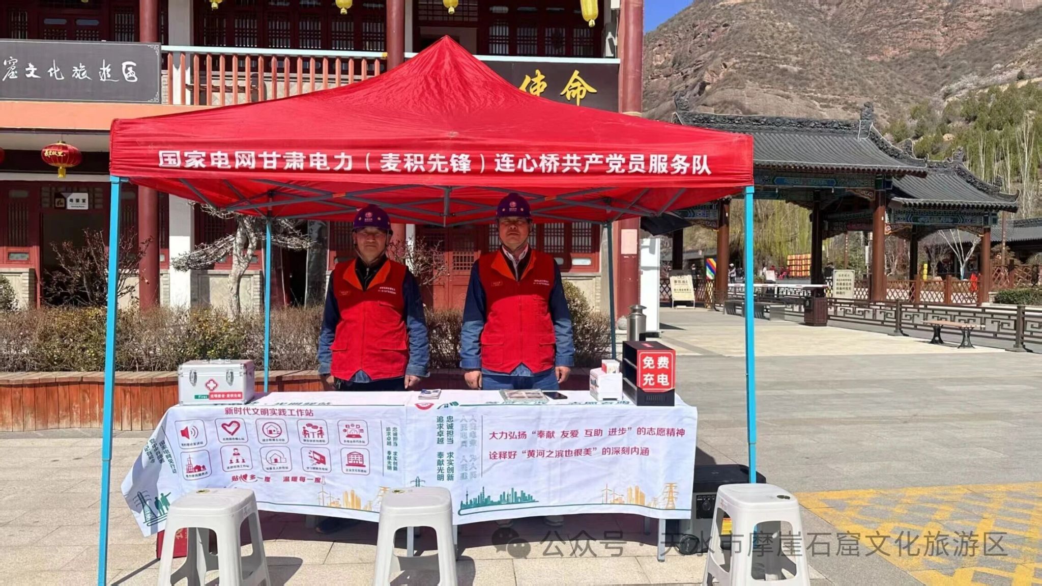 部门协同保安全。各部门闻令而动、协同作战,党员干部主动冲锋在前,坚守在党员示范岗和党员志愿服务岗一线。她们身披红马甲,或耐心解答游客咨询,或主动帮扶老弱病残,或协助疏导人流车流,将暖心、贴心、用心的优质服务融入到每一个环节,让党旗在景区服务保障的最前沿高高飘扬。公安干警在重点区域疏导人流车流、维护现场治安秩序;医护人员驻场待命,随时为游客提供及时高效的医疗救助;应急、消防部门全面排查安全隐患,做实做细应急处置准备;市场监管部门严查景区食品安全与经营秩序,规范市场物价;供电部门全程值守,保障景区电力稳定供应,以扎实举措织密筑牢活动期间安全防线。