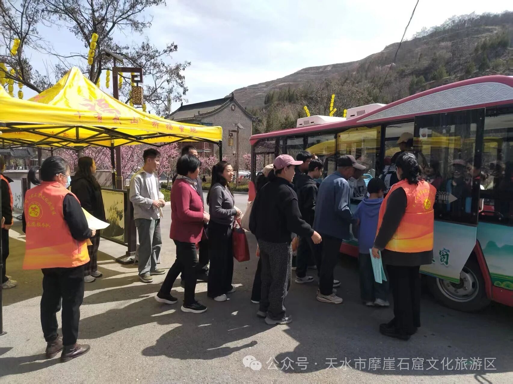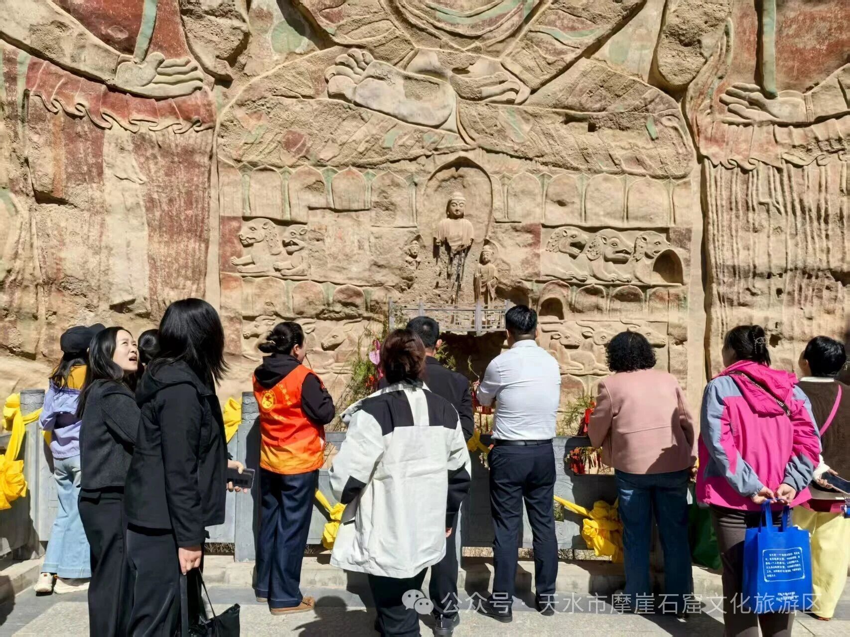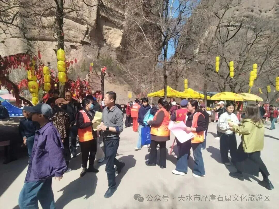 春风送暖,万象更新,千年石窟沐春光,文旅嘉年华正当时。2026年“陇上菜都·大福武山”文旅嘉年华活动——“踏春迎福”世界第一摩崖浮雕大佛旅游观光活动正在天水市摩崖石窟文化旅游区如火如荼进行中。景区以党建为引领,凝聚多方合力,以细致服务、周密保障、文明实践,全力护航春游游览秩序,让八方游客在春日石窟中尽享文旅之乐,共赴一场安全舒心、文化浓郁的春日之约。