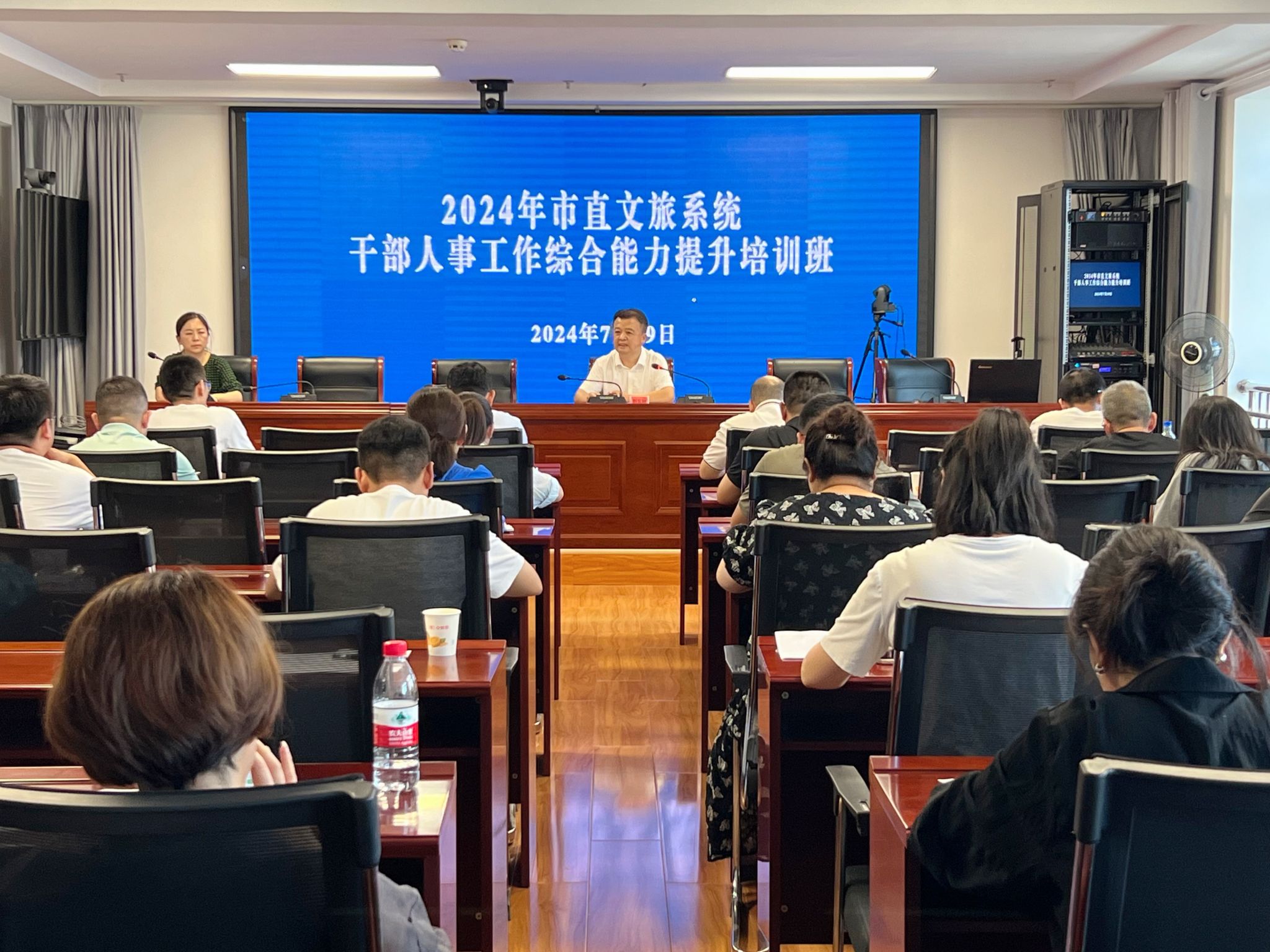 为进一步提升市直文旅系统干部人事政策理论水平和业务能力,持续强化干部人事队伍建设,高效、规范地推动全系统干部人事工作,7月19日,市文化和旅游局举办2024年市直文旅系统干部人事工作综合能力提升培训班,局属各单位干部人事工作分管领导、办公室主任、业务经办人员共计30余人参加培训。