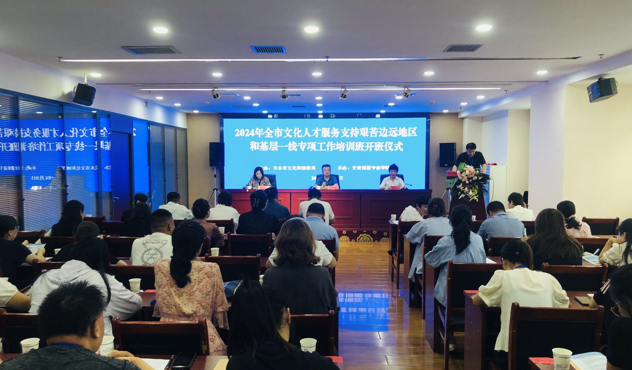 为进一步提高我市“文化人才专项”工作者的业务能力,建立一支高素质的基层文化服务队伍,推动全市公共文化事业健康有序发展,市文化和旅游局于8月27至30日,举办2024年全市“文化人才服务支持艰苦边远地区和基层一线专项工作”培训班。两区五县文体广电和旅游局分管领导、业务主办人员以及选派招募的“文化人才专项”工作者代表共计40余人参加培训。市文化和旅游局党组成员、副局长刘宗林出席开班仪式并作了动员讲话,对参训学员提出了具体要求。甘谷县、秦安县对2023年“文化人才专项”工作情况进行了交流发言,2023年“文化人才专项”选派工作者市歌舞艺术研究中心王云霞同志分享了服务基层的经验和体会。