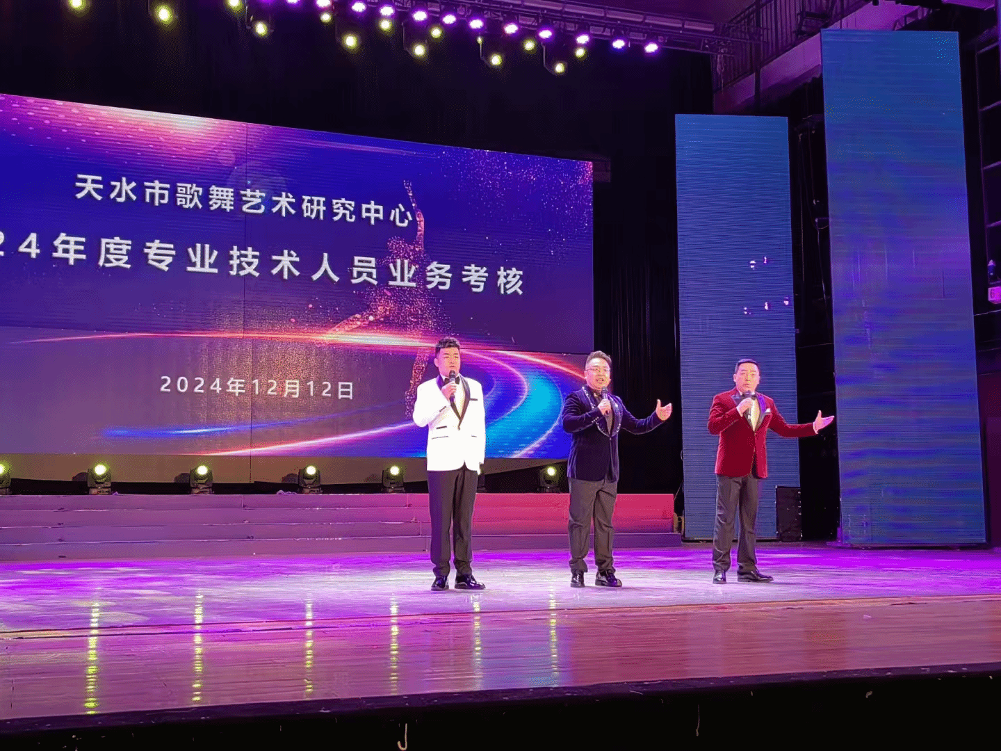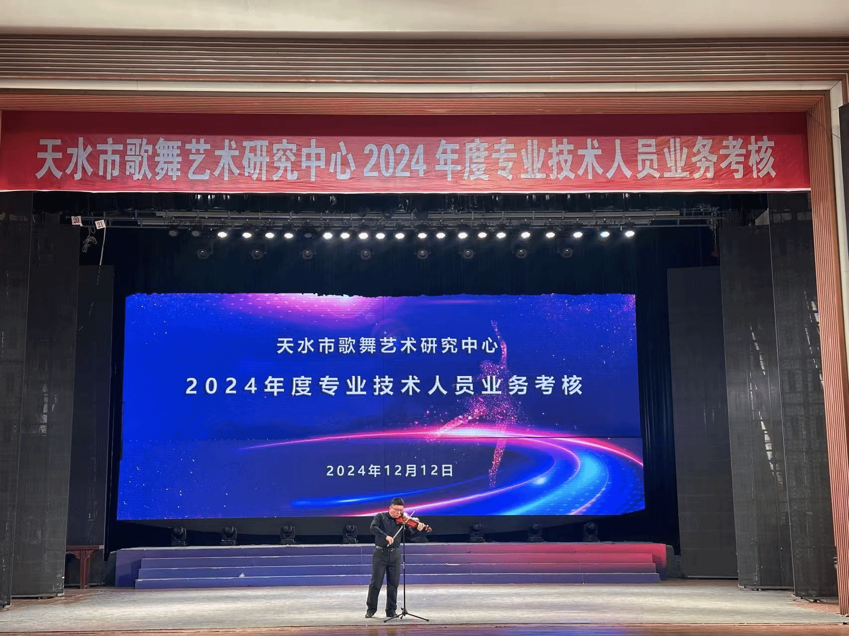 早上8:30开始,利用一天时间,从基本功、专业技巧展示等多方面对器乐、声乐、舞蹈、曲艺、舞美等从业人员的专业素养进行了考核。本次专业考核内容丰富多彩,有民族古典舞、民间舞、现代舞、小提琴、琵琶独奏、歌曲演唱、歌剧片段表演、小品、相声表演等。这些充分展示了天水市歌舞艺术研究中心专业技术人员扎实深厚的功底、较强的表演能力和演员的一专多能。