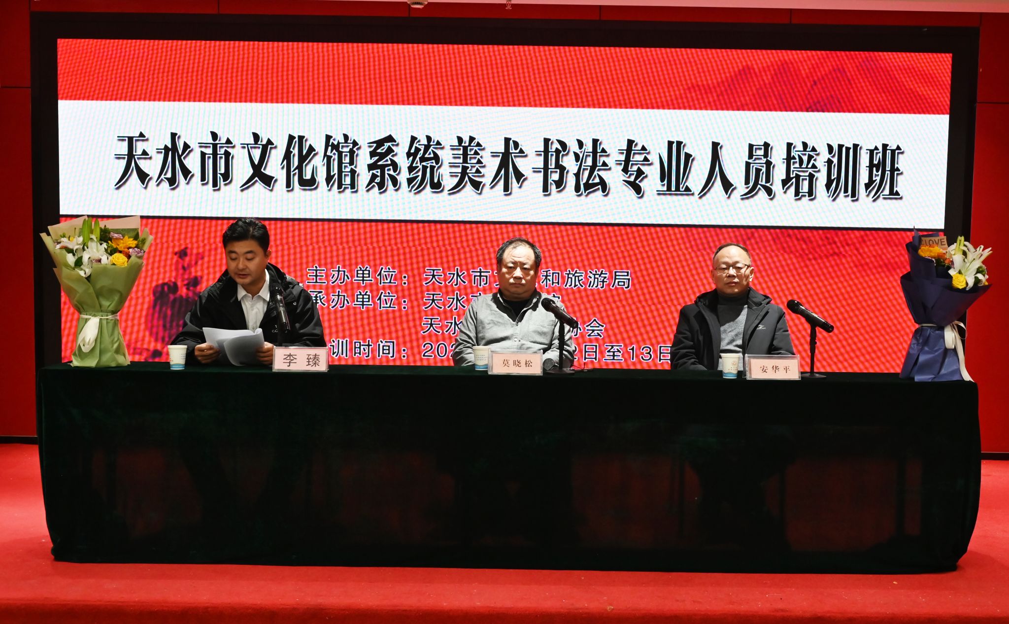 11月12日上午,由天水市文化馆举办的2025年全市文化馆系统美术书法专业人员培训班正式开班。本次培训班最大的亮点是邀请了北京画院原副院长、国家一级美术师、中美协理事、中国工笔画学会副会长、中国画学会理事、北京美协理事、北京高级职称评审委员莫晓松先生,以及北京画院专业画家、中国美术家协会会员、中国工笔画学会会员,国家一级美术师、四川省工笔画学会副会长、成都当代工笔画研究会副会长安华平先生,两位艺术大家联袂授课,吸引了来自全市两区五县文化馆(站)以及全市书画界的120余名书画家和业务骨干参加。