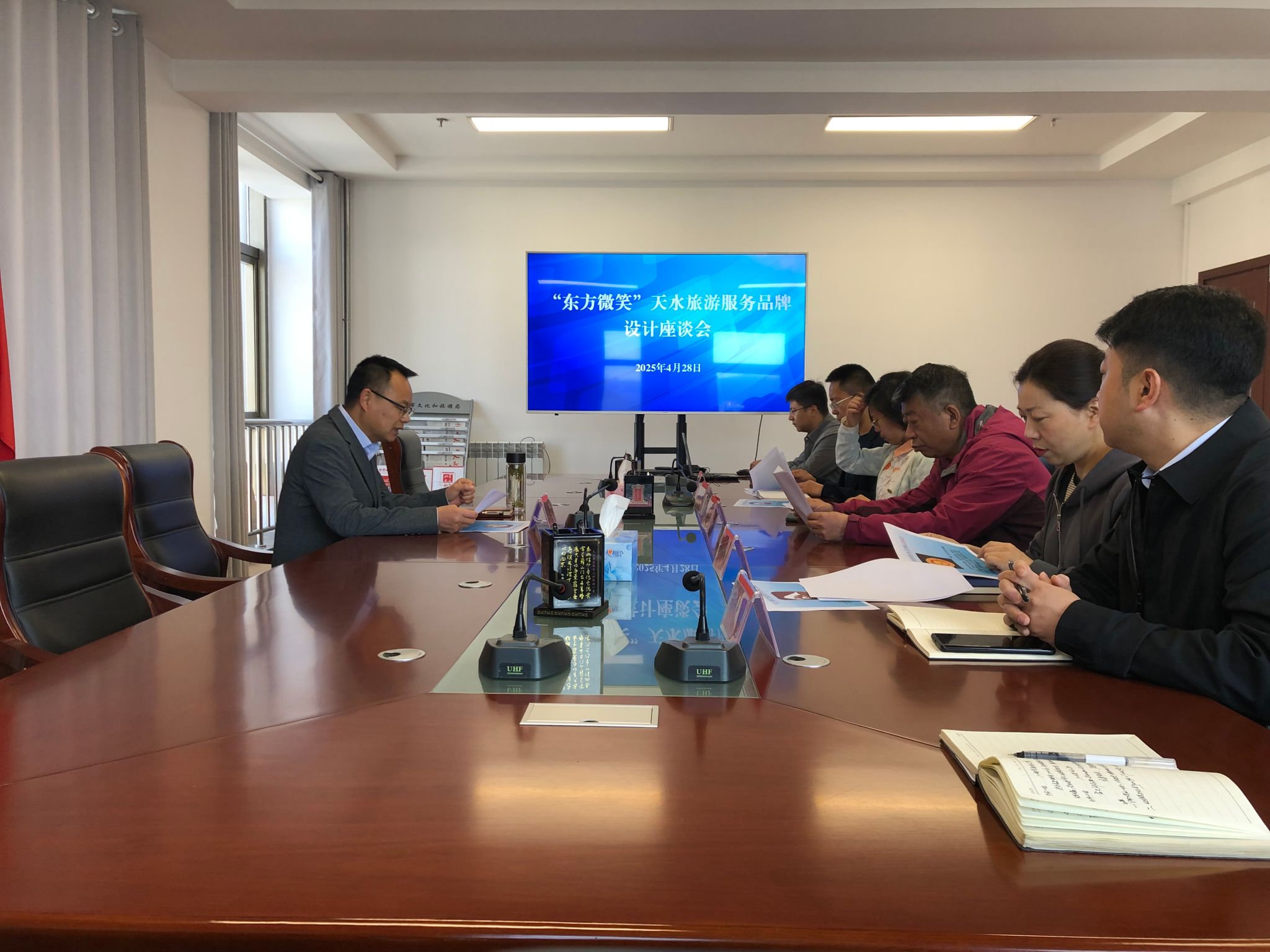 为打造独具特色的“东方微笑”旅游服务品牌,进一步提升天水市文化旅游形象,4月28日,天水市文化和旅游局组织召开“东方微笑”旅游服务品牌Logo设计研讨会,共同为“东方微笑”旅游服务品牌的视觉标识出谋划策。