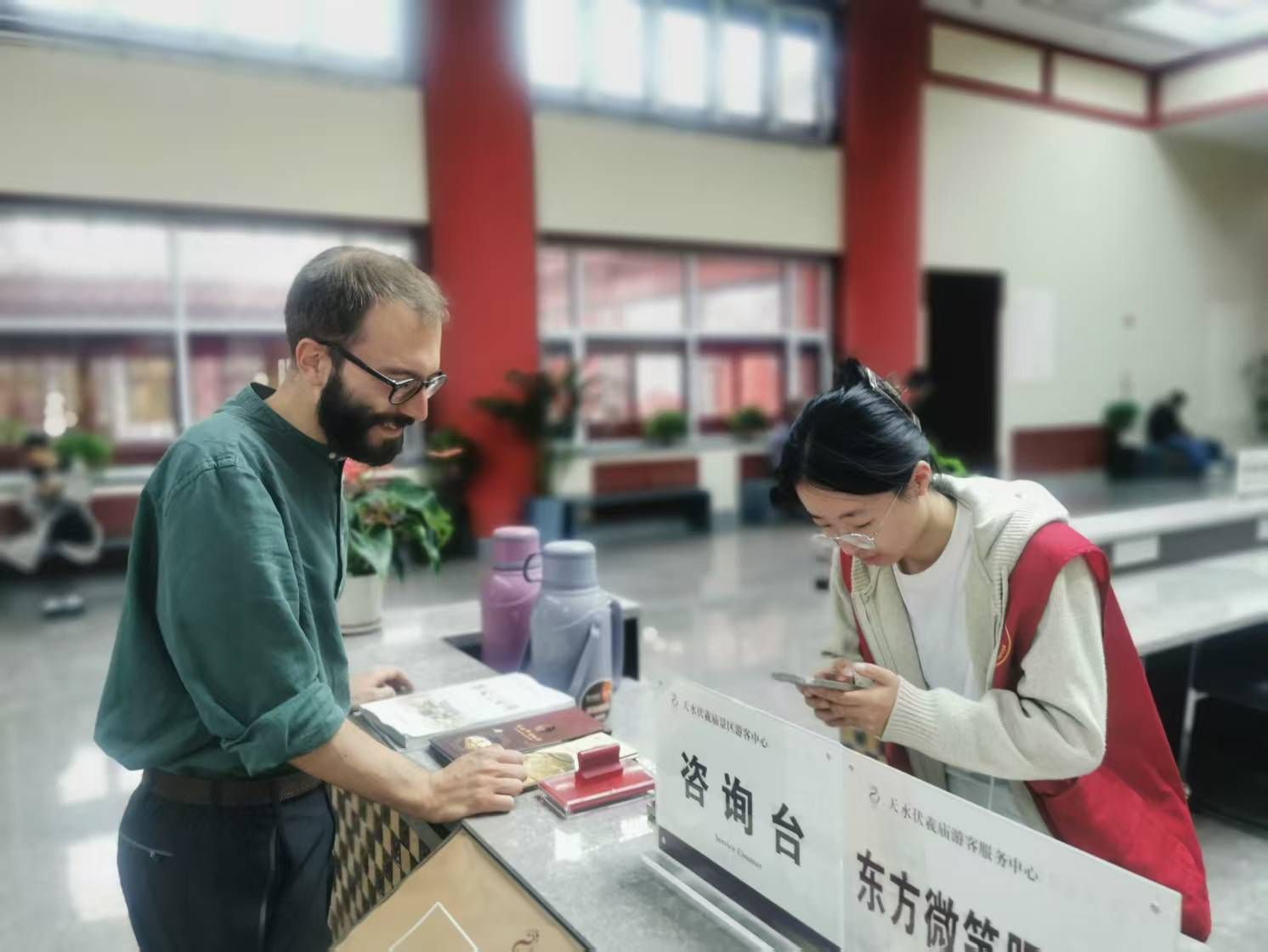 设立“东方微笑”旅游服务岗,贴心服务无处不在。在天水南站、各景区景点及星级饭店等游客聚集区域,精心设置了“东方微笑”旅游咨询服务站和服务岗,免费为游客提供茶饮、行李寄存,以及涵盖交通、住宿、游览的“一站式”咨询和导引服务。用真诚的微笑和专业的服务,让每一位游客都能感受到天水的热情与温度。