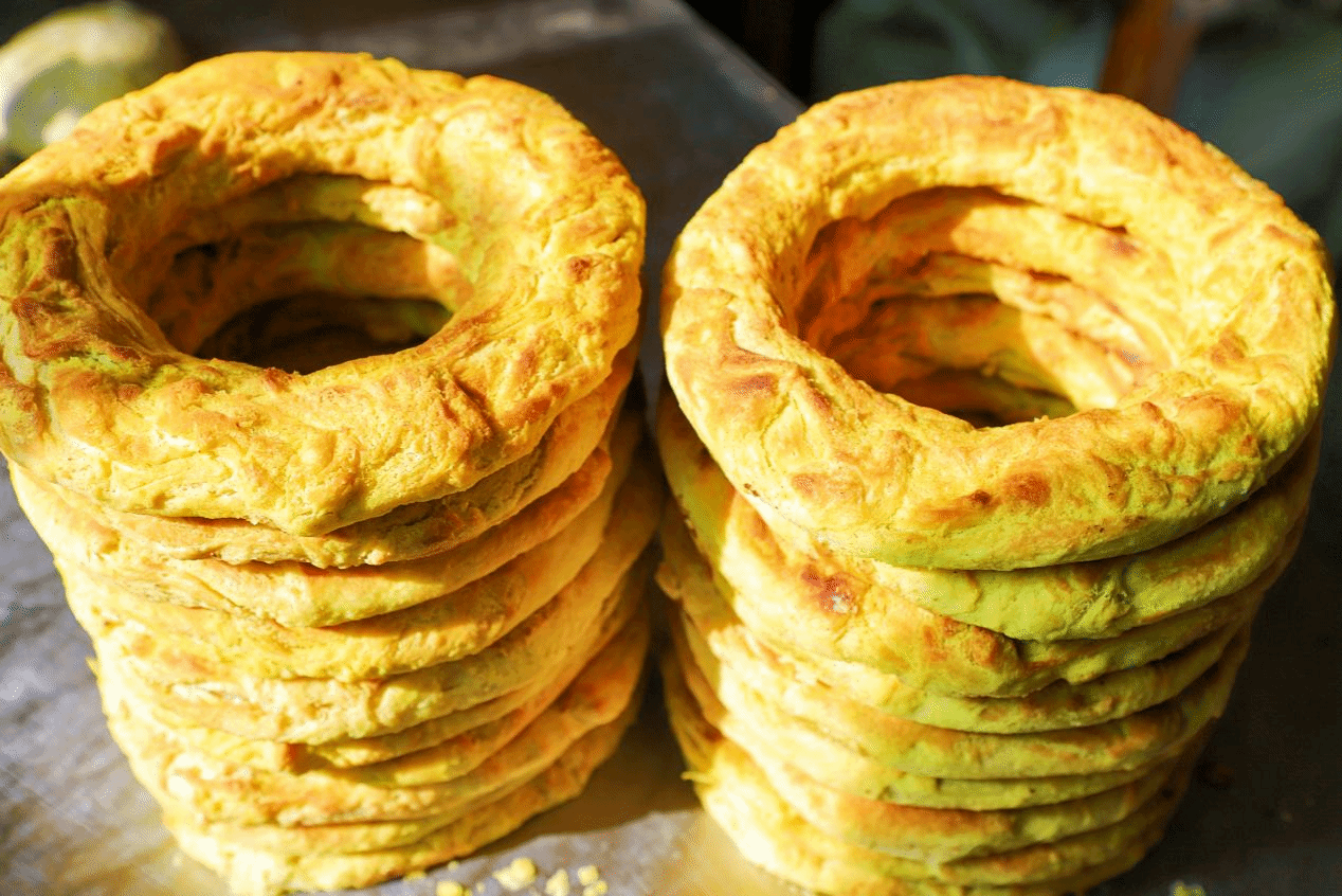 武山油圈圈,是武山县一种极具特色的面食风味小吃。武山油圈圈形似圆环,底色淡黄,表面花纹的棱角呈橙红色,黄红交织,像盛开的花一样。吃在嘴里,麻香酥脆又略带绵性,色、香、味俱佳,是武山人外出探亲必带佳品。