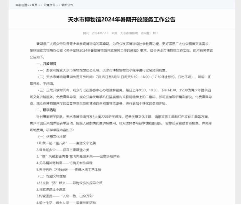 天水市博物馆多举措应对“暑期档”旅游接待工作