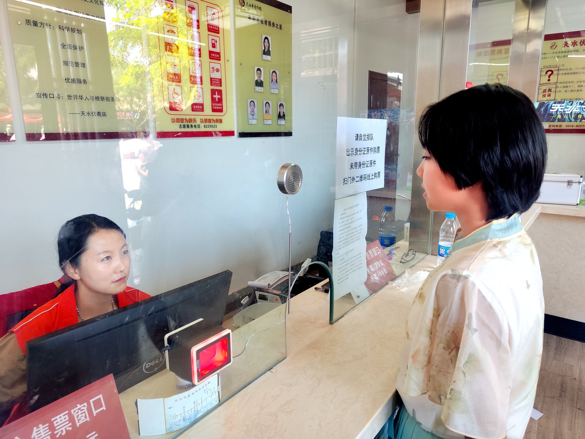 自6月下旬起,天水市博物馆陈列展馆、伏羲庙景区游客量持续增高,伴随着三伏天的高温风险,为切实保障景区安全管理,给游客提供良好的游览体验,天水市博物馆积极备战,坚守岗位一线,多举措、全方位加强管理和服务水平,筑牢暑期游览安全防线。一是加大巡逻监控力度,对重点要害部位实行24小时布防,与同辖区派出所积极建立联动机制,极大的提高了景区的安全性。二是严格消防安全管理,邀请相关公司对消防设备、防雷设施、电气线路进行检查检测,确保景区设备正常运转,完好有效。三是对重点岗位人员进行安全知识培训,加大突发事件处置的演练,提升工作人员安全意识,提高处置突发事件能力。暑期期间帮助游客认领丢失手机40余部,帮助走失小孩找回家人20余起,为游客提供医疗帮助10起,帮助游客认领丢失身份证30余个,制止游客纠纷15起。四是定期检测水电安全,并及时储备防汛物资,做好夏季防汛工作。五是为游客提供防暑等便民用品。