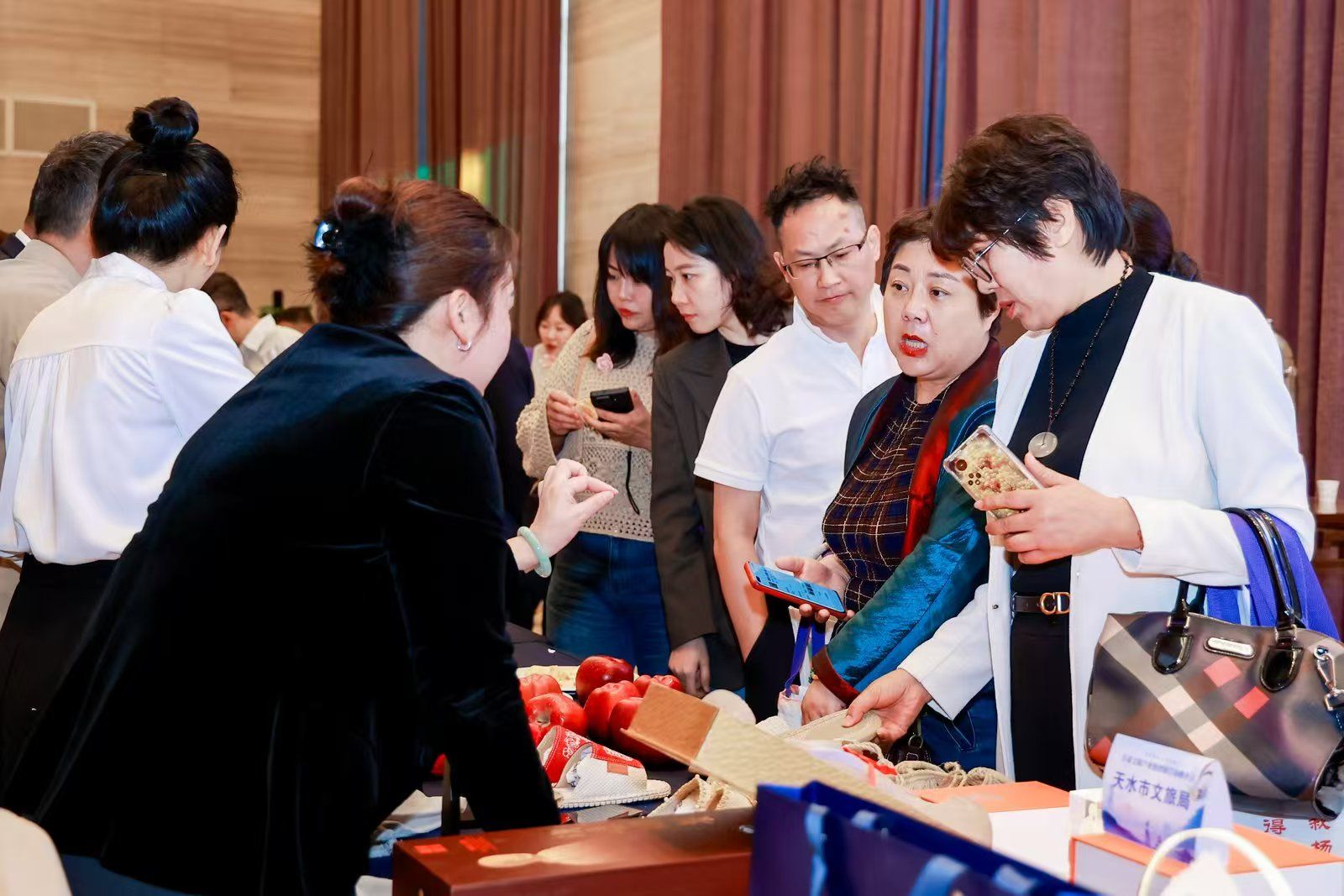 天水市组织天水东方文化发展有限公司、甘肃雅路人麻编工艺制品发展有限公司、天水柒礼文化创意有限公司等文化创意企业参加“甘肃文创+”产品展示展销活动,展品涵盖麻编工艺品、陶艺制品、文创衍生品等多个品类,“天水花牛苹果”毛绒挂件,鲜气十足,寓意着生活红红火火、平平安安;“东方微笑”系列产品跨越千年传递出宁静、慈悲的情感;“甘谷麻鞋”凝结了农耕文明的传统智慧,都是极具天水特色的文创产品,吸引了众多参会者驻足欣赏与咨询。