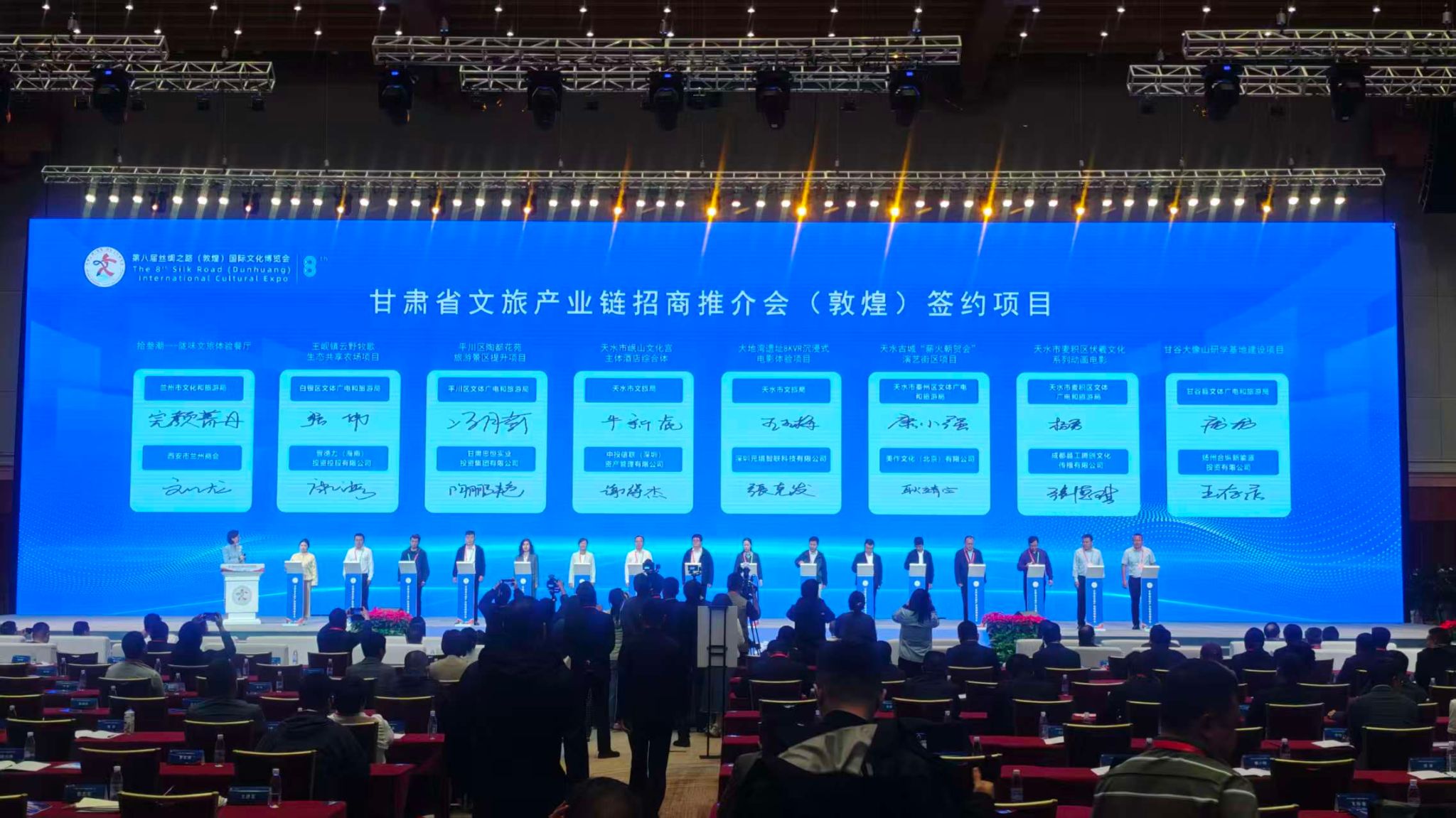 在甘肃省文旅产业链招商推介会上,我市岷山文化宫主题酒店综合体、大地湾遗址8KVR沉浸式电影体验项目、天水古城“薪火朝贺会”演艺街区项目、麦积山温泉酒店项目等11个项目成功签约,签约金额23.22亿元。这些项目涵盖文化旅游综合体开发、景区提升、文旅康养等,随着这些项目的落地建成,将为进一步丰富全市文旅业态、延长产业链条、推动文旅产业高质量发展注入强劲新动能。