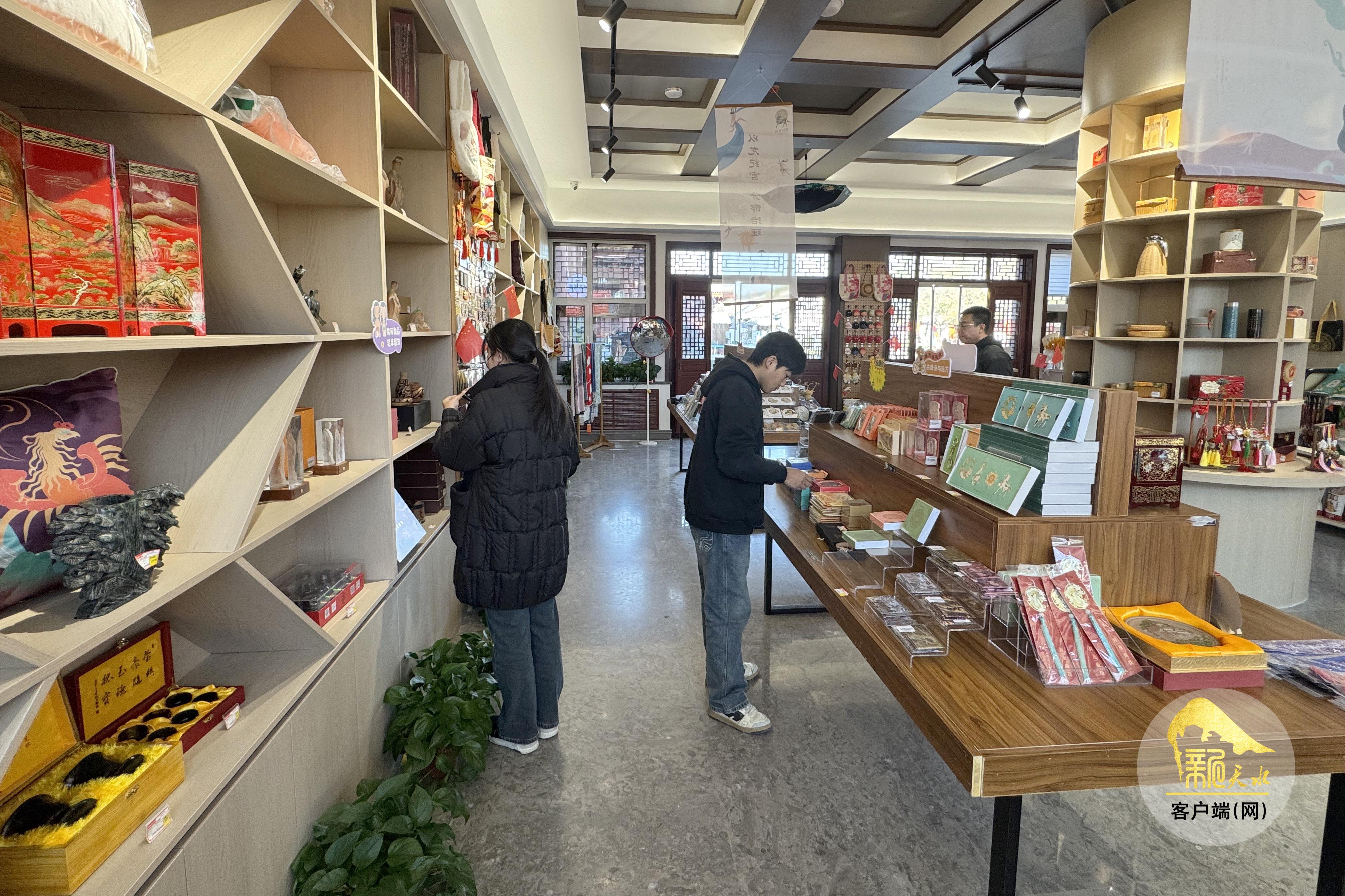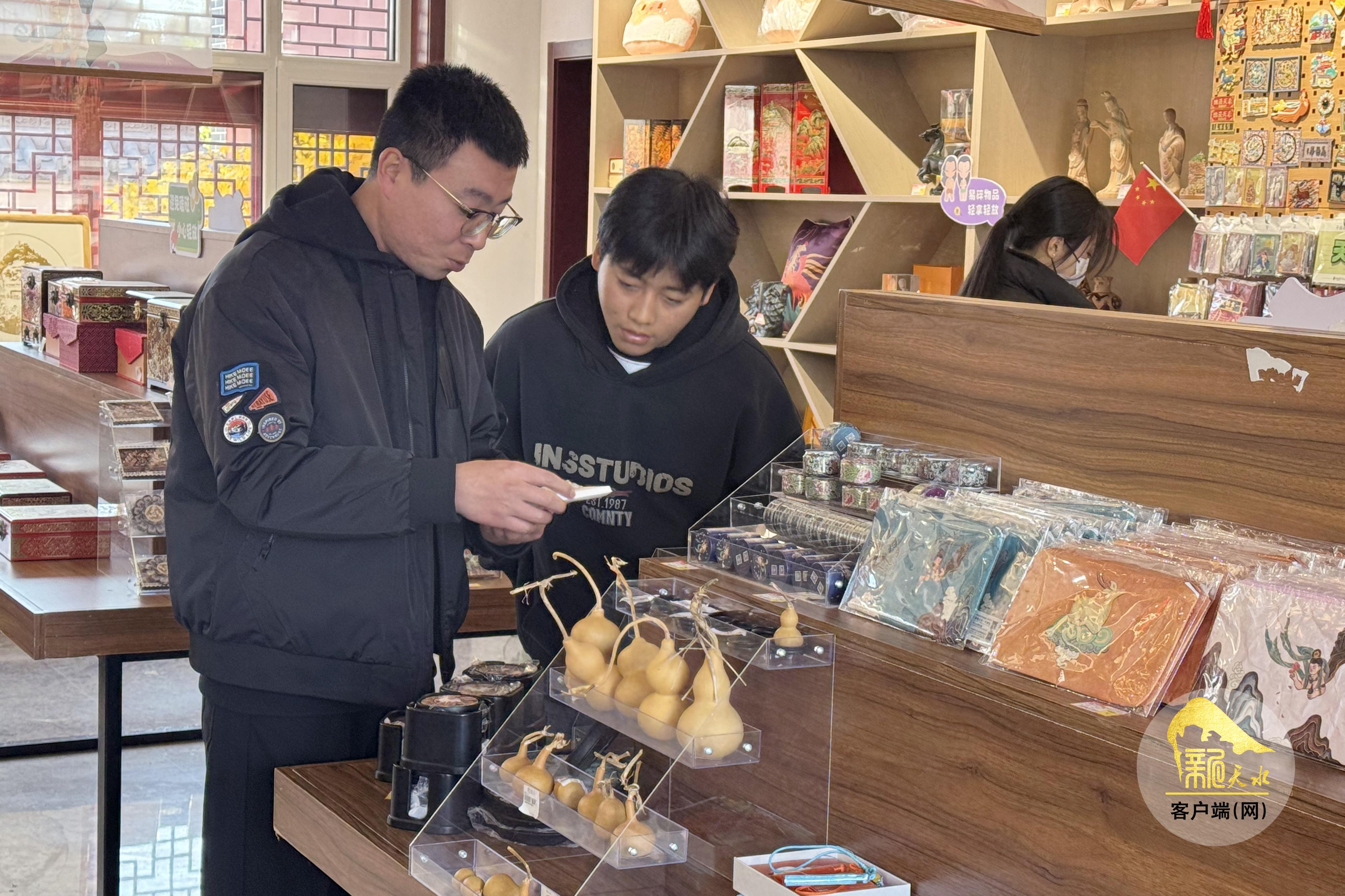 一件件趣味十足的文创产品透着满满的文化创新力。走进天水伏羲庙游客服务中心天水文创店,各式文创产品琳琅满目,让人应接不暇。游客围在柜台前,仔细挑选着自己喜欢的文创产品。