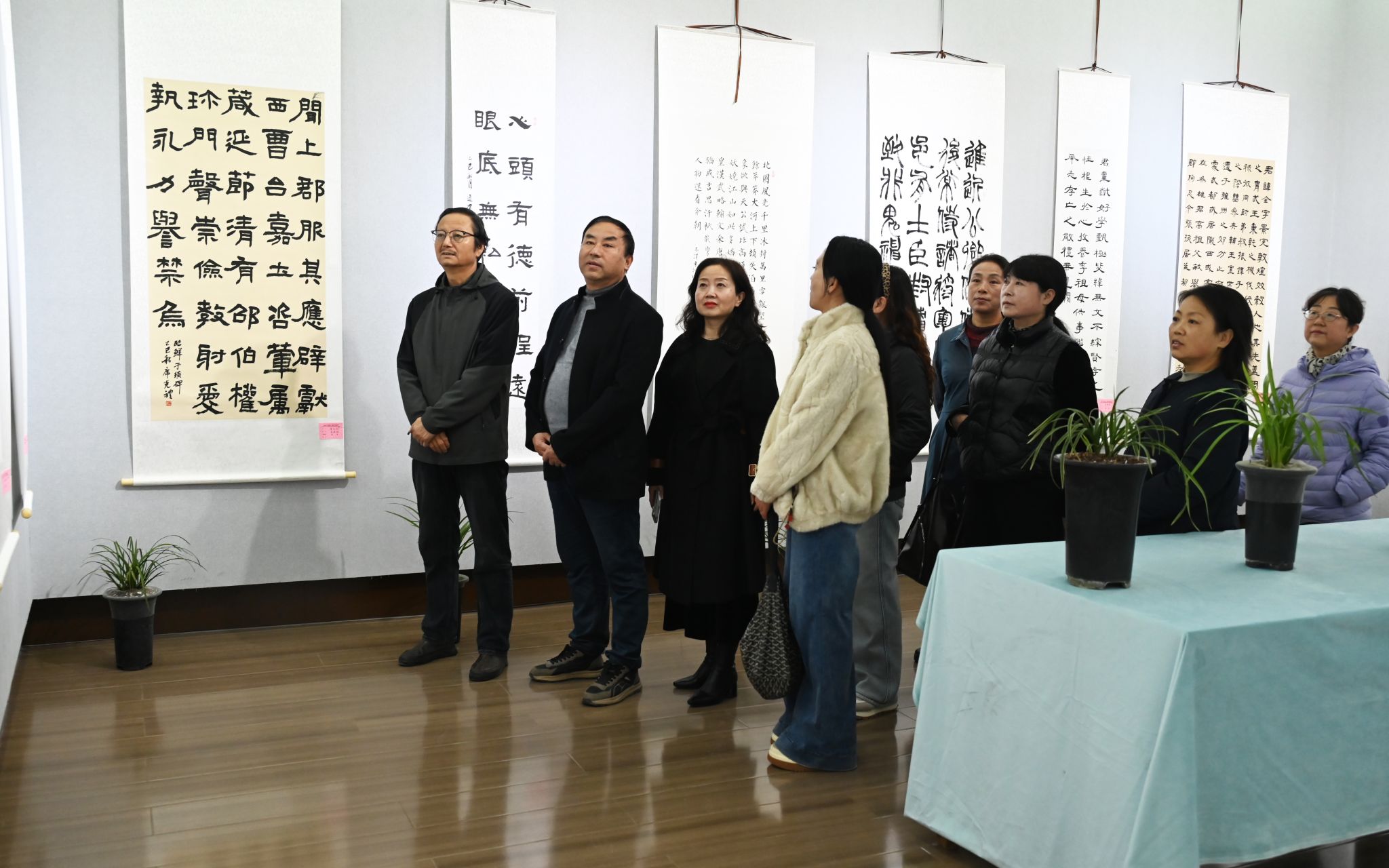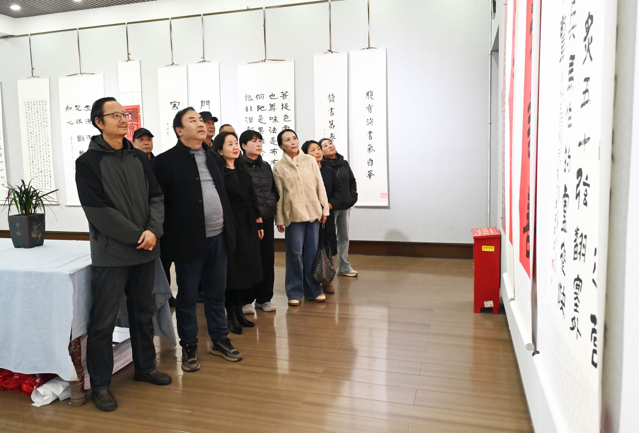 此次展览共展出陈安祥老师及其学生书法作品一百余幅,每一幅作品都承载着独特的心意。陈安祥老师深耕书坛数十载,笔力浑厚,格调高雅,其作品或遒劲有力,或飘逸灵动,尽显书法艺术标杆,而学员们虽多为银发长者,却怀着对书法的满腔热爱,临帖摹碑,勤学不辍。笔下的点画撇捺,或许少了些娴熟匠气,却多了份沉淀的从容与真诚,楷书端方如做人风骨,行书流畅似生活意趣,篆书隶书,古朴藏岁月沉香,每一笔都记录着他们在求学路上的点滴进步,每一幅都饱含着对生活的热爱与艺术的追求。