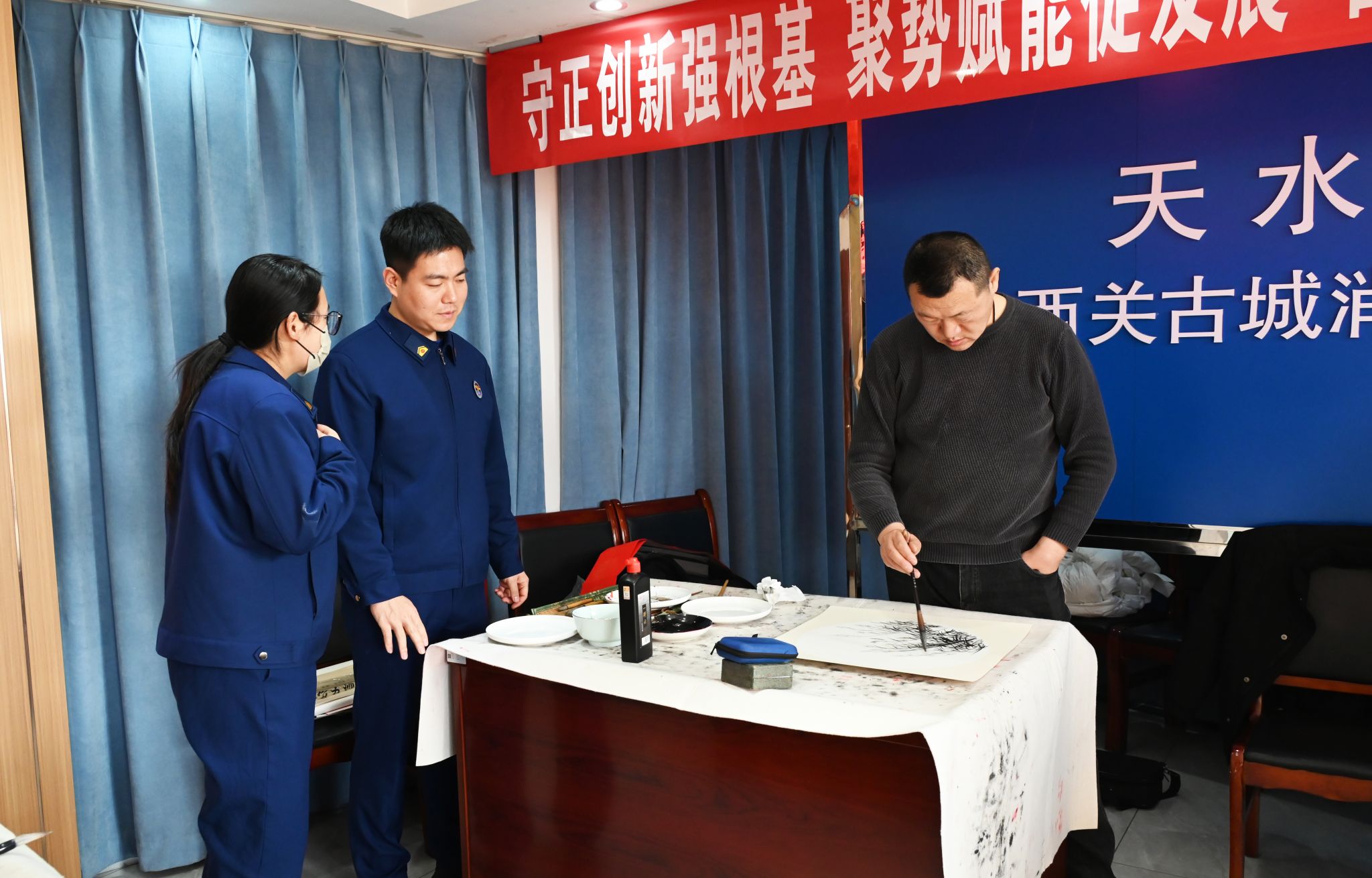 1月15日下午,天水市文化馆组织党员干部与文化志愿者,走进西关古城消防救援站开展“送春联送祝福”新春慰问活动,向常年奋战在抢险救援一线的消防指战员们致以诚挚的问候与节日的祝福。