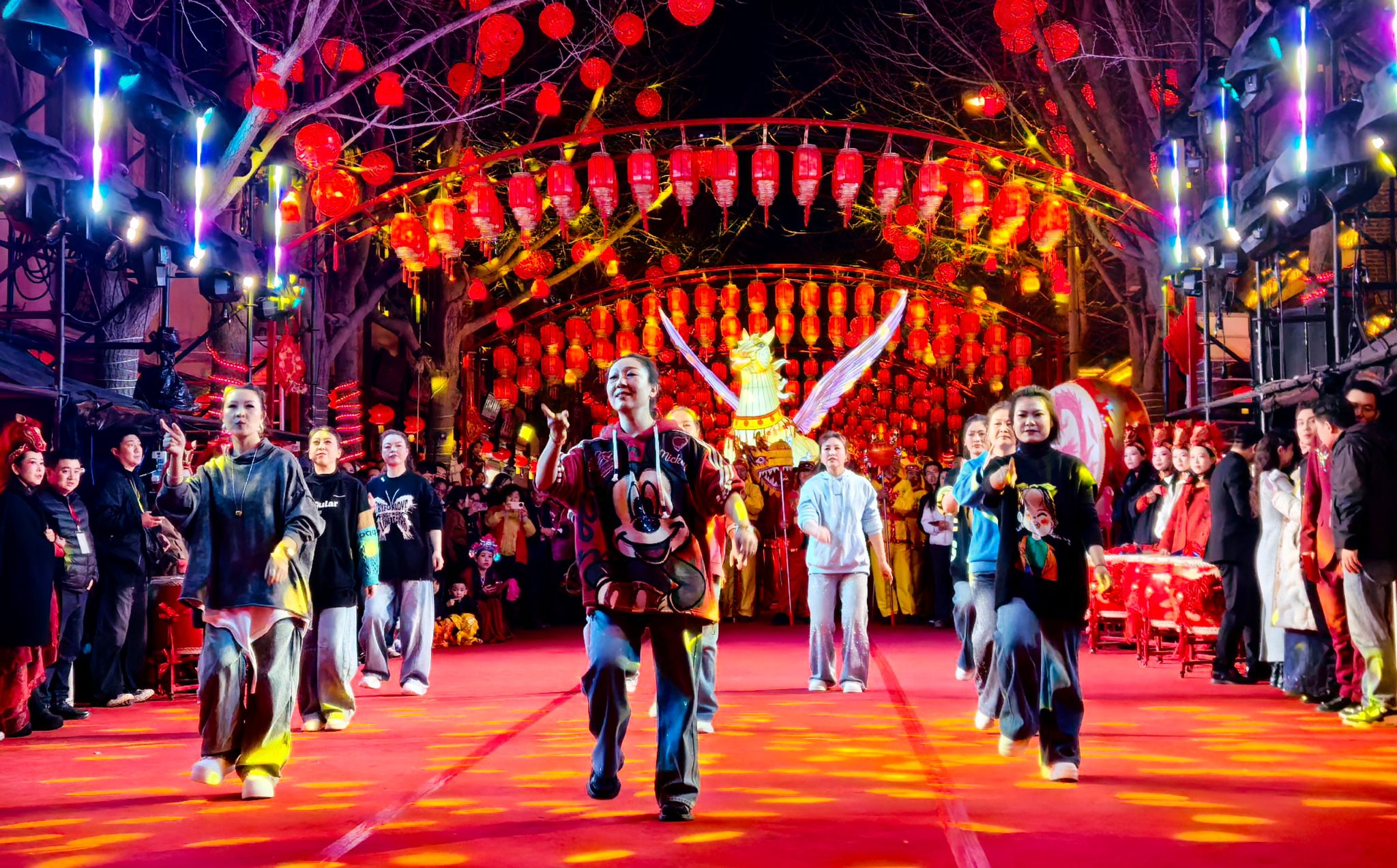 夜幕降临,华灯璀璨,青年北路年味浓郁、人流如织。在热烈的掌声中,市文化馆群舞《花牛苹果红了》率先登场。舞者们以灵动舞姿、饱满情绪,生动展现天水花牛苹果产业蓬勃发展、乡村振兴硕果盈枝的喜人图景,把地方特色、丰收喜悦与人民幸福融入艺术表达,彰显产业兴旺、民生改善的时代画卷,赢得现场阵阵喝彩。