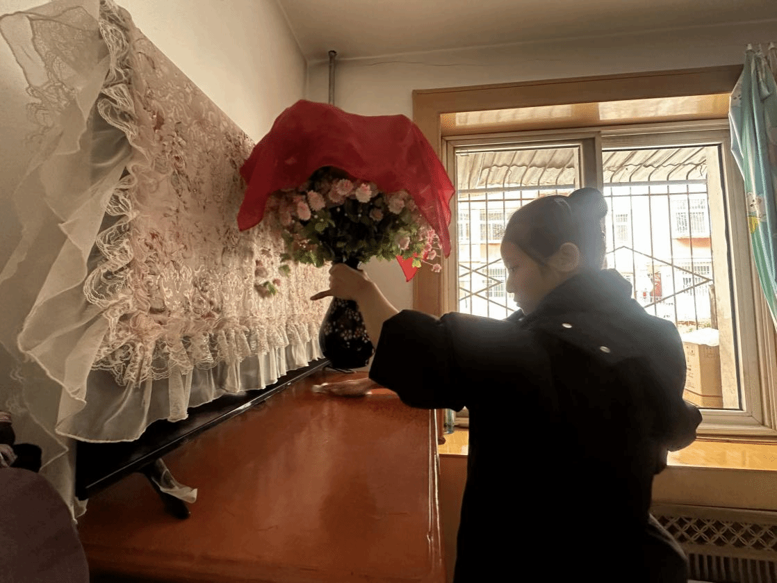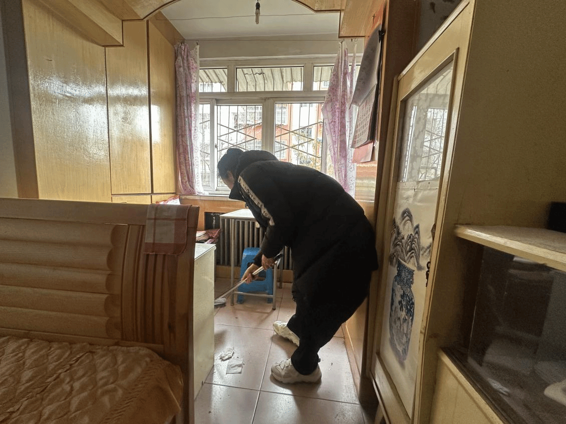 活动当日,志愿者们怀揣热忱奔赴社区,兵分两路同步开展志愿服务,各项工作有序推进。一组志愿者深入社区孤寡老人家中,贴心开展居室清洁服务。大家分工协作、默契配合,有的细致擦拭门窗玻璃与桌椅家具,有的认真清扫地面灰尘、规整屋内杂物,还有的耐心清洗厨房油污、归置生活用品,不放过任何一处卫生死角。打扫过程中,志愿者们主动与老人们促膝交谈,耐心询问老人的身体状况与日常起居需求,陪老人唠家常、送温暖,细心叮嘱老人注意居家安全、保重身体。这份稚嫩却真挚的陪伴,驱散了独居老人的孤寂,让老人们真切感受到来自青年一代的温情关怀。经过彻底清扫,老人家中焕然一新,整洁舒适的居住环境赢得了老人们的连连称赞与由衷感谢。