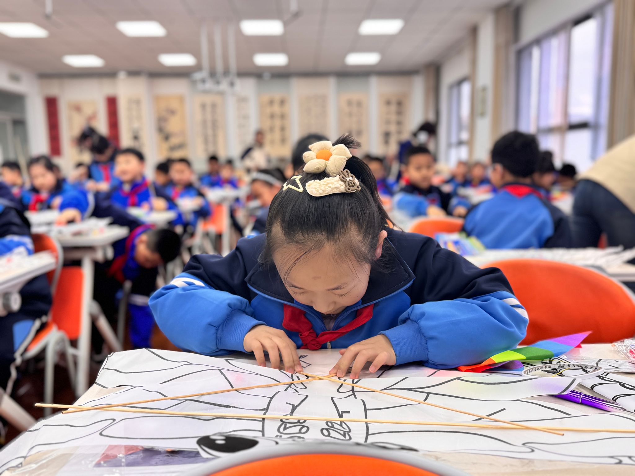 课程结束后,进入手工制作风筝环节,孩子们手持彩笔、竹篾与彩纸,认真勾勒、粘贴、系线,一只只色彩斑斓的小风筝在小手中渐渐成型,满是童趣与创意。