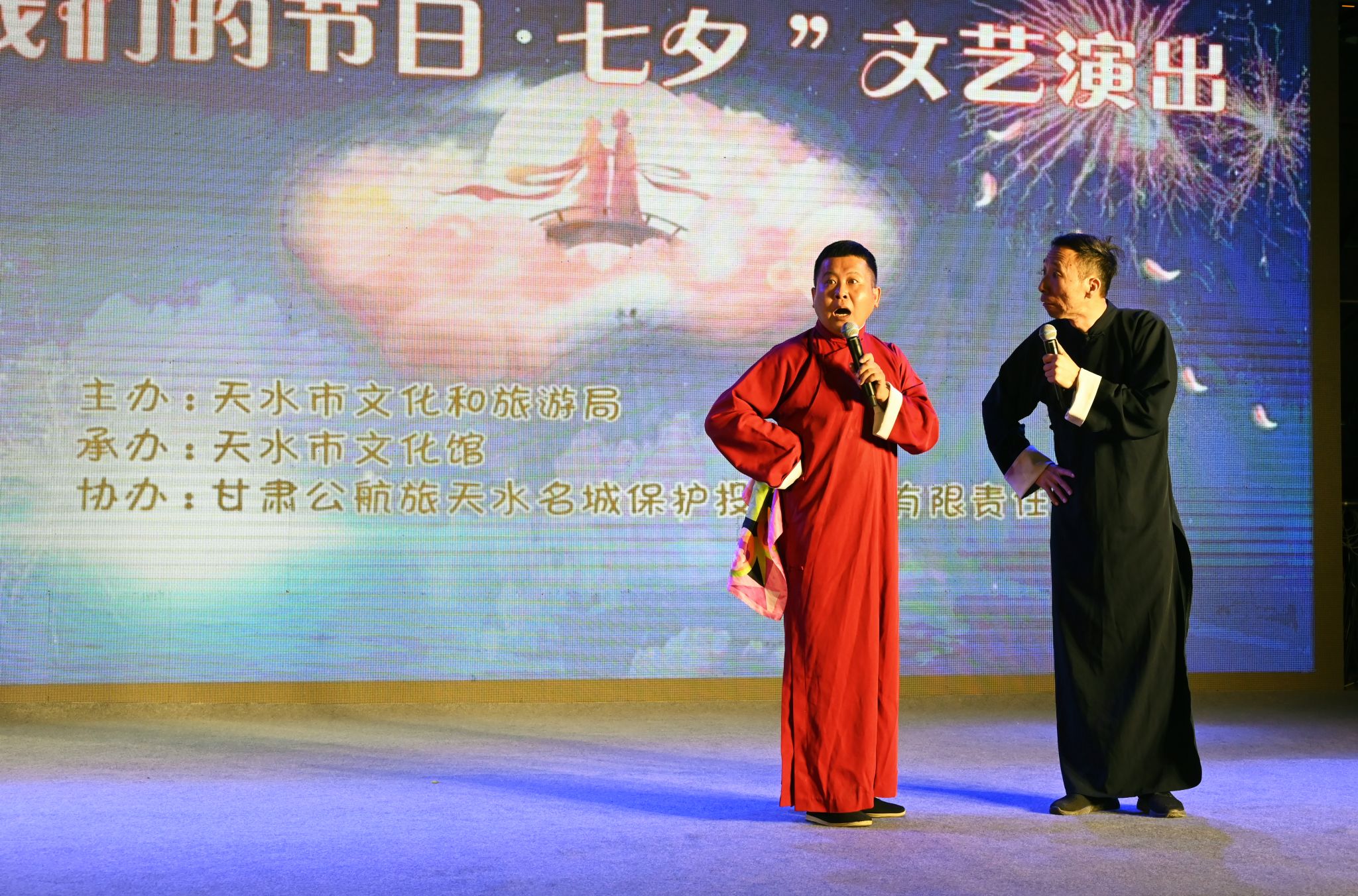 8月21日,在七夕节来临之际,由天水市文化和旅游局主办、天水市文化馆承办、甘肃公航旅天水名城保护投资发展有限责任公司协办的“人间星河•共度七夕”—“我们的节日·七夕”文艺演出活动在天水古城举办。