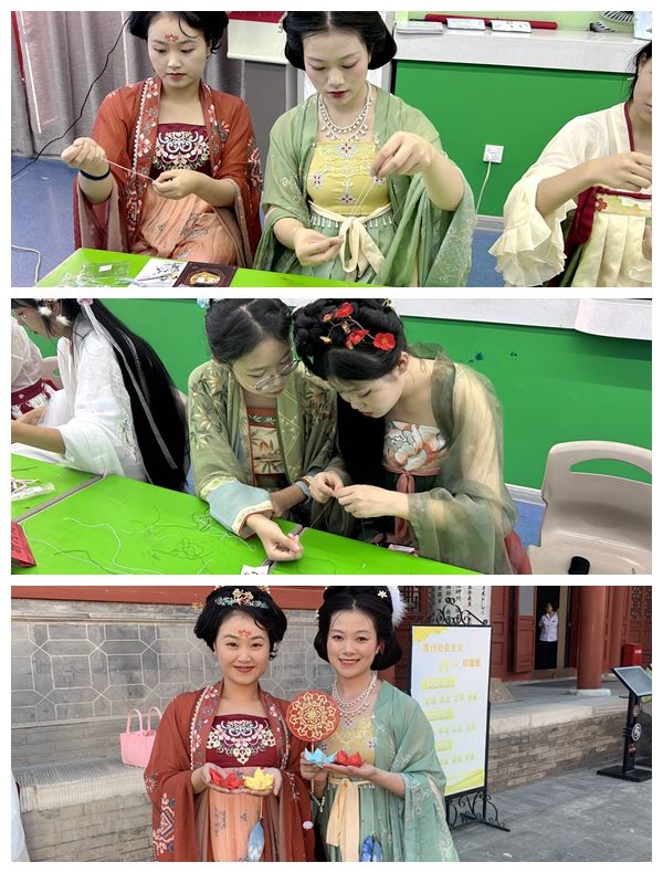 活动当天,30余位青年汉服爱好者着传统盛装穿行于古庙之中,与中式宗庙建筑交相呼应,将传统美学融入现代生活。在宣教老师的带领之下,大家围坐桌边,共同学习七夕节俗,探寻文物当中蕴藏的中式浪漫元素,编织属于自己的七夕同心手绳,追寻先祖的足迹,传承独特的中式浪漫。