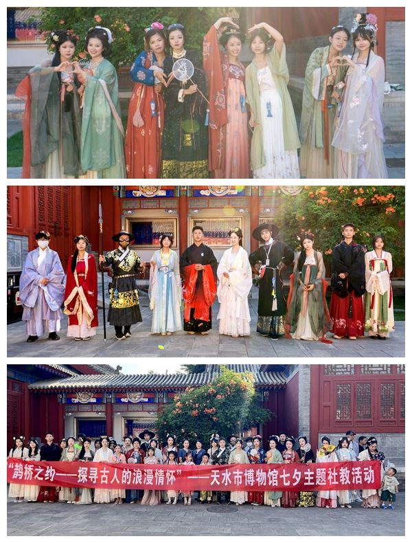 值此佳节来临之际,天水市博物馆策划了“鹊桥之约——探寻古人的浪漫情怀”七夕主题社教活动,活动由天水市博物馆与伏羲庙国风馆共同协作,邀请共青团秦州区委、秦州区妇联、天水汉服协会参与,一起完成了本次别具特色的七夕社教活动。