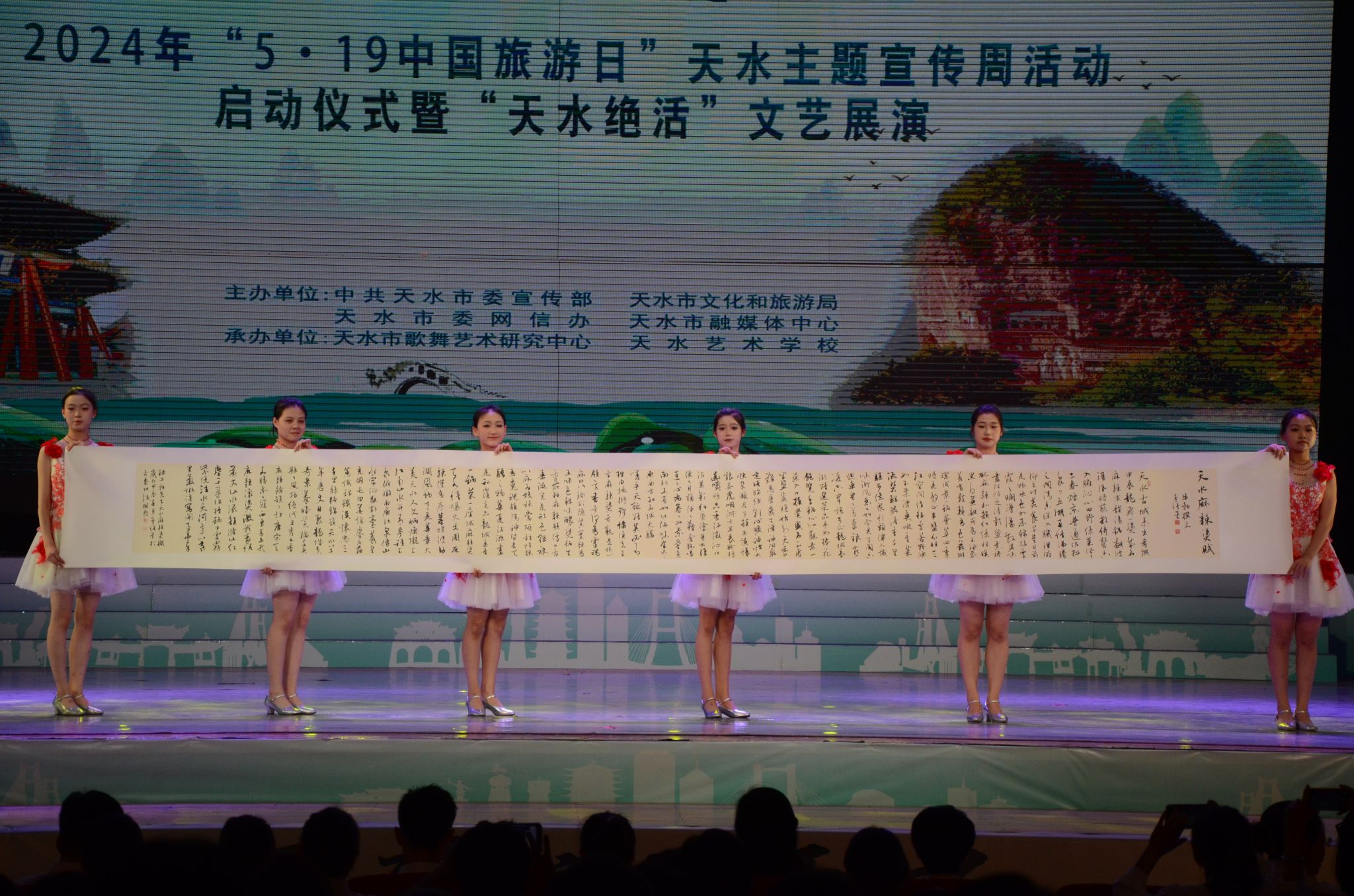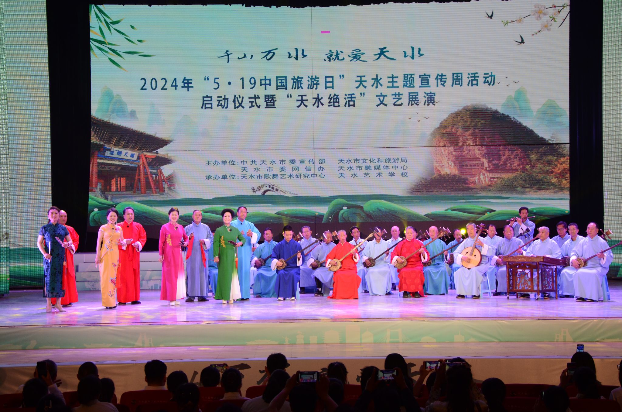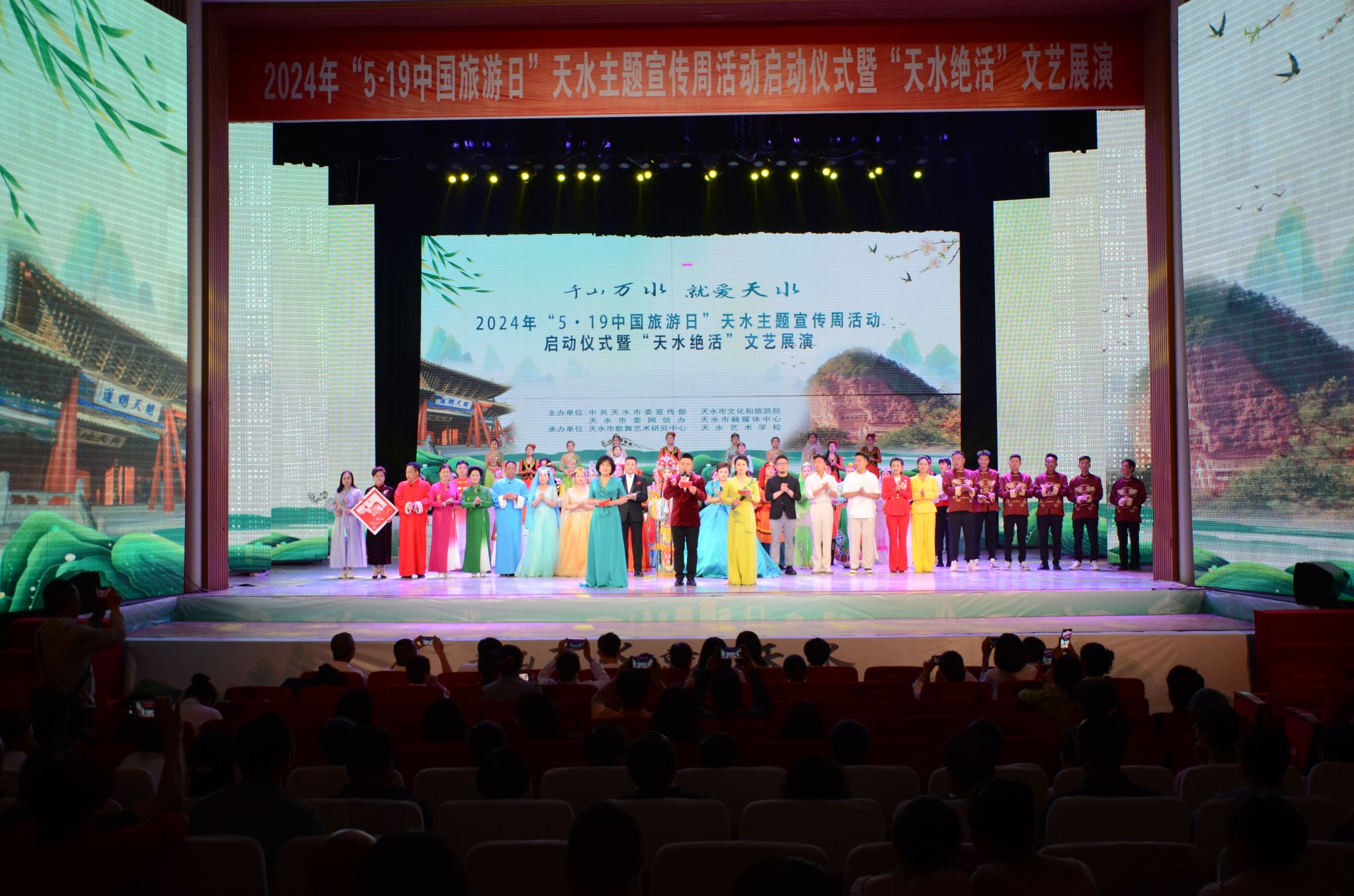 5月13日下午,2024年“5·19中国旅游日”天水主题宣传周活动启动仪式暨“天水绝活”文艺展演在秦州大剧院举办。省文化和旅游厅党组成员、副厅长吕兴来,市委常委、副市长张宇晶,市人大常委会副主任沈建玲,市政协副主席吴立新出席活动,并分别为天水文旅推介官颁发聘书。表彰了李斌等20名天水优秀导游员、讲解员,以及天水市星级饭店从业人员服务技能竞赛获奖选手和单位。此次活动由中共天水市委宣传部、天水市文化和旅游局、天水市委网信办、天水市融媒体中心主办,全市文旅行业、宣传部门、融媒体机构、网红达人等各界代表400余人参加。