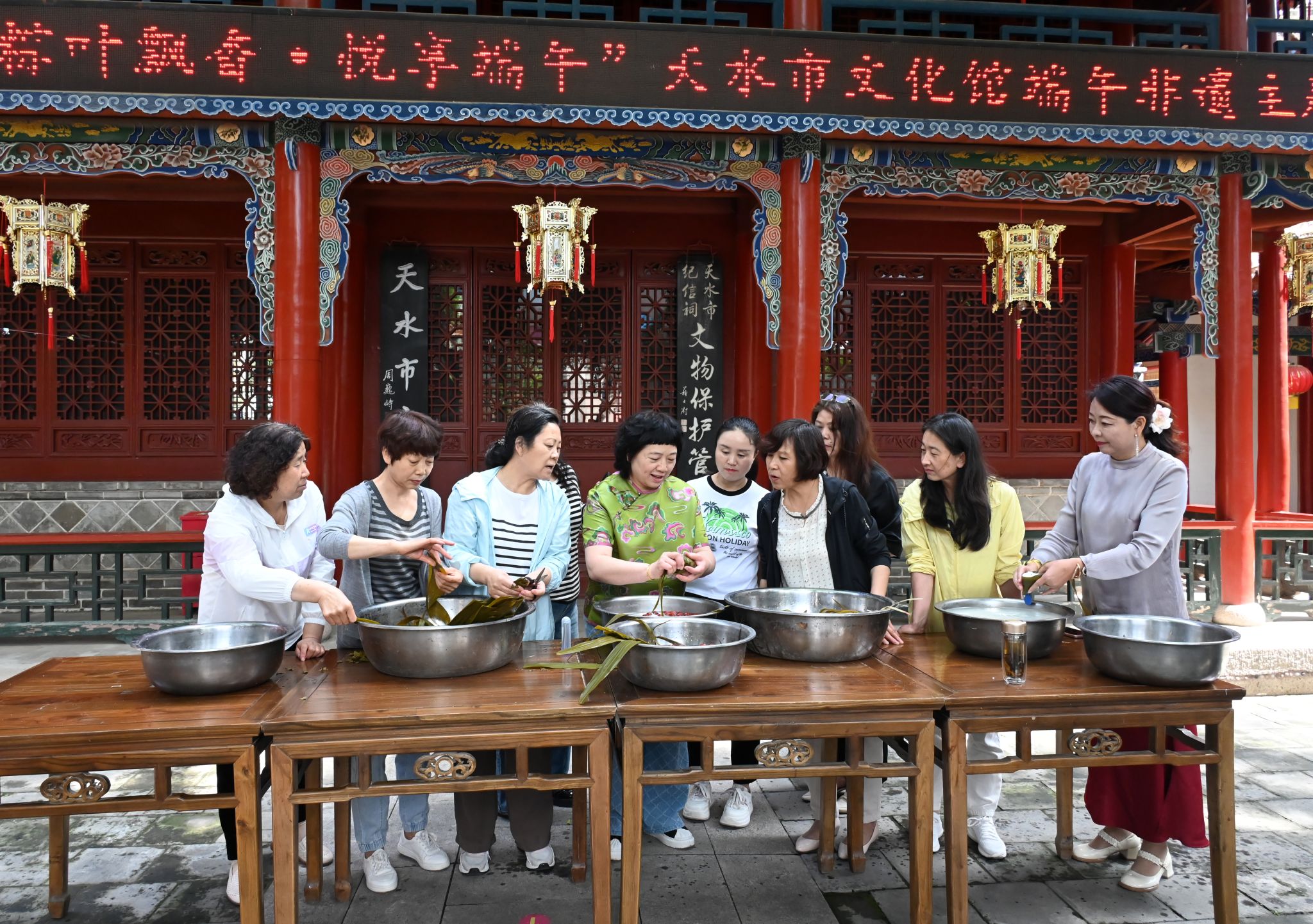 二、非遗活动亮点纷呈。结合2024年“文化和自然遗产日”,深度挖掘端午节的文化内涵,积极组织开展多姿多彩、亮点纷呈的宣传展演展示线上线下活动64项,营造人人参与、人人共享的良好氛围。天水市文化馆举办“粽叶飘香·悦享端午”非遗主题的包粽子、染漆扇、编花样系列活动,大地湾博物馆、天水工业博物馆分别组织开展了手工香包制作社教活动,麦积区博物馆开展了手工花环DIY主题活动,清水县图书馆开展了彩色手链制作活动,传承弘扬中华优秀传统文化,推动文化遗产融入大众日常生活,增强人民群众文化自信和文化自豪感。