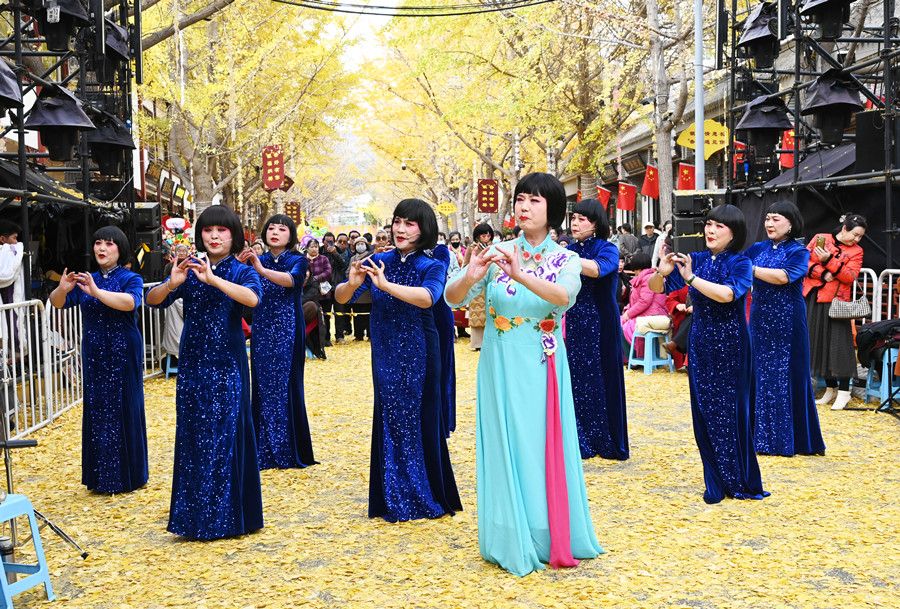 11月16日,在“‘银’客天下,‘杏’福秦州”第七届文化旅游宣传周期间,天水市文化馆秦腔艺术团组织全体学员举办了“秦腔古韵响彻黄金大道,公益培训硕果润泽民心”秦腔专场演出活动。一阵阵高亢激昂的秦腔古韵在此响起,为这幅绝美的自然画卷注入了厚重的文化灵魂,吸引了众多市民游客驻足欣赏。