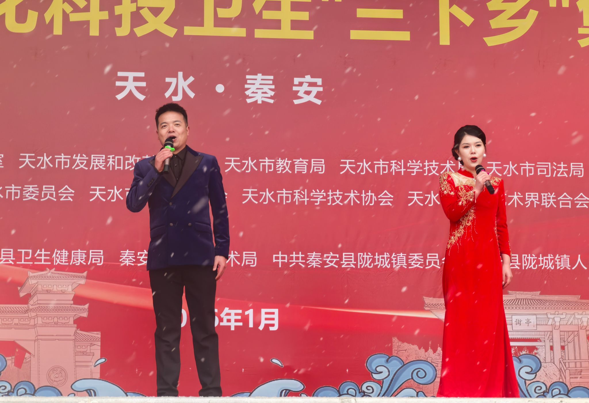 1月19日,2026年天水市文化科技卫生“三下乡”集中示范活动在秦安县陇城镇女娲祠文化广场举行。本次活动由中共天水市委宣传部、市精神文明建设办公室、市文化和旅游局等15家单位联合主办,中共秦安县委、秦安县人民政府承办。天水市文化馆作为我市公共文化服务的重要力量,积极参与此次活动,以精彩的文艺演出和温馨的文化惠民服务,为当地群众送去了冬日暖意和新春祝福。