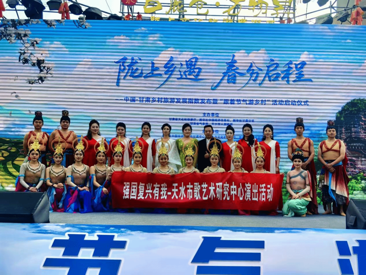 3月21日,甘肃乡村旅游发展指数发布暨“跟着节气游乡村”主题活动在天水市麦积区白鹿仓顺利举行。天水市歌舞艺术研究中心应邀参加本次活动,中心精心遴选文艺骨干力量,携三大精品文艺节目亮相活动现场,以灵动歌舞展现天水独特文化魅力,以专业艺术风采助力活动宣传推广,用文艺实践践行“强国复兴有我”的使命担当,圆满完成本次演出任务。