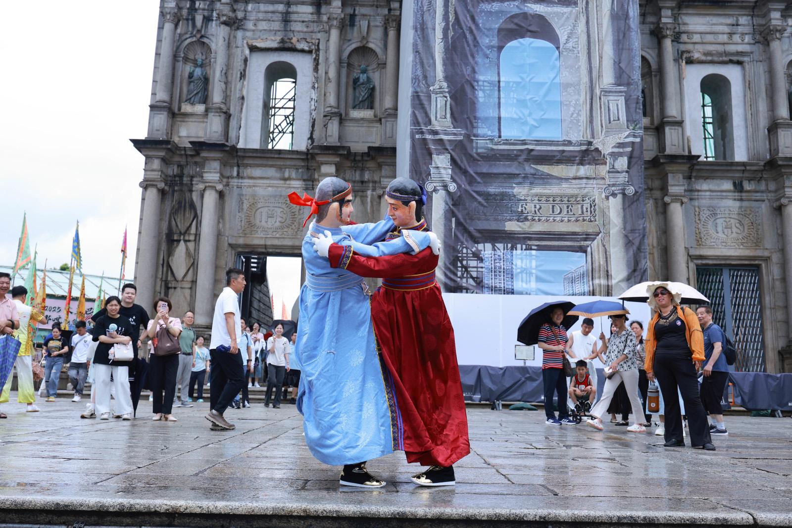 新天水讯 近日,在澳门举办的“2025根与魂——甘肃省非物质文化遗产展演”活动中,来自甘肃天水的清水木人摔跤惊艳亮相,为澳门观众带来了一场极具特色的视觉盛宴,展现出中华优秀传统文化的独特魅力,赢得现场阵阵掌声。