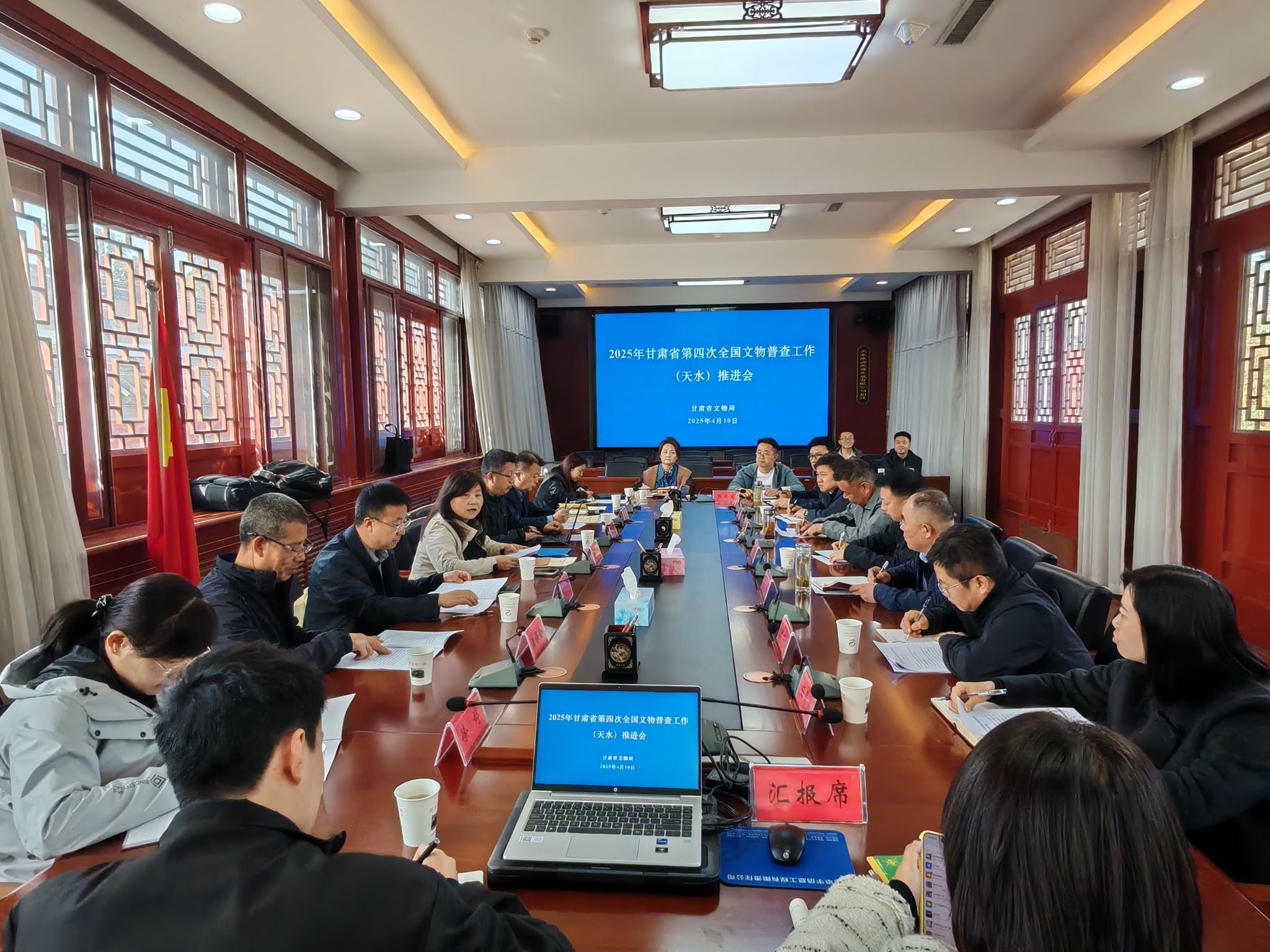 4月10日—11日,2025年甘肃省第四次全国文物普查工作(天水)推进会在天水市博物馆召开。会议由省文物局文物保护与考古处处长、省四普办综合协调组组长赵剑飞主持,会上传达了国家文物局第四次全国文物普查南宁调训会有关精神,各县区汇报了四普工作进展情况。专家组通过查看资料、听取汇报、现场问询等方式全面了解我市四普进展、标准规范掌握情况,帮助我市分析解决了普查中遇到的问题和难点,并对下阶段工作重点进行了进一步部署强调。市文化和旅游局副局长、文物局局长、市四普办主任刘宗林,各县区四普办负责同志,市、县(区)普查业务骨干40余人参加了会议。