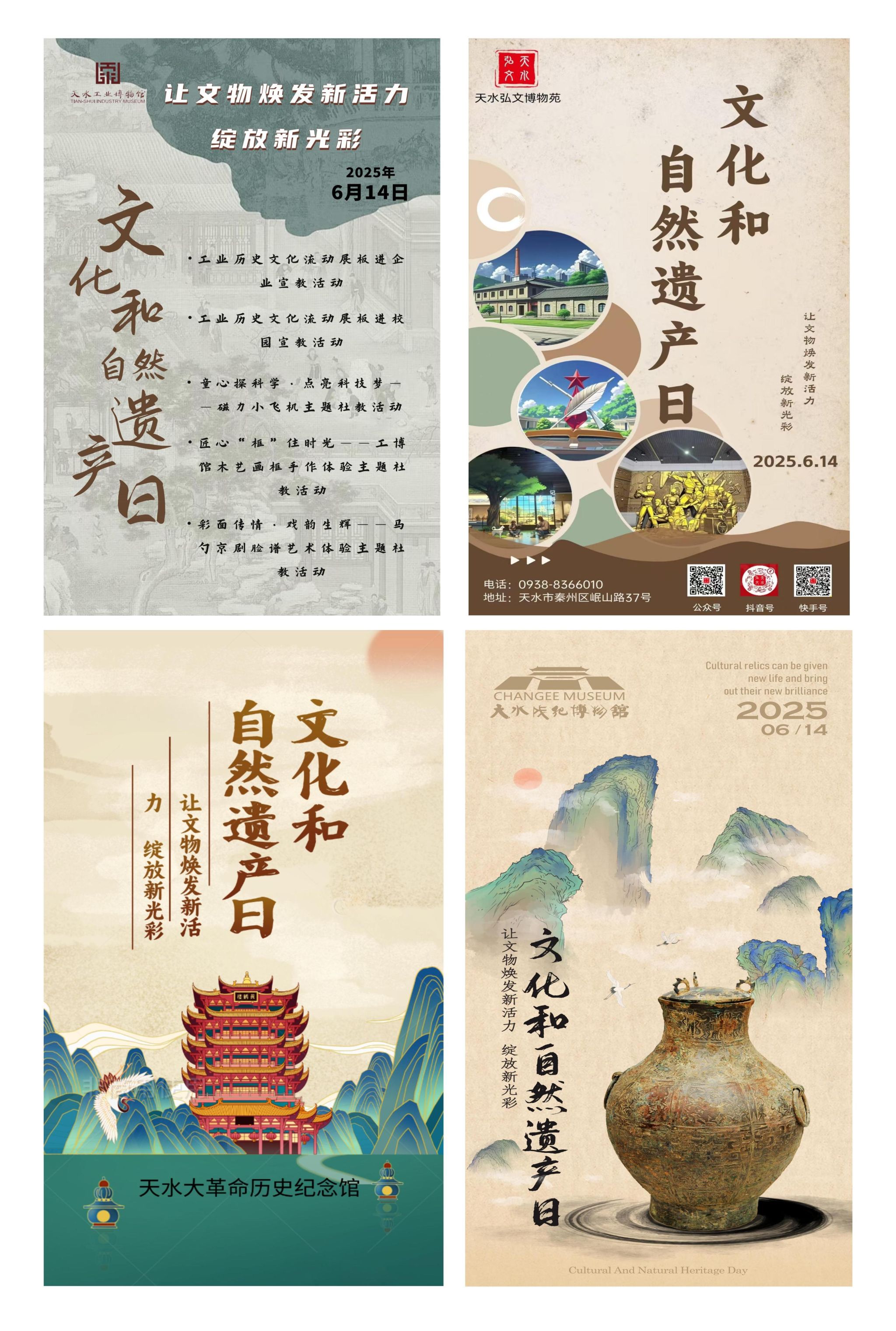 2025年“文化和自然遗产日”甘肃省主会场系列活动,将于6月14日(星期六)上午9:00,在天水市伏羲庙游客服务中心启幕。主场活动由甘肃省文物局、天水市人民政府主办;天水市文化和旅游局、秦州区人民政府、麦积山石窟艺术研究所承办;天水市博物馆、天水市文化旅游投资发展有限责任公司、各县区文体广电和旅游局协办。主场活动紧紧围绕“让文物焕发新活力 绽放新光彩”这一主题,策划活动14项。与此同时,全市74项宣传活动同步启动。活动期间,我们将通过短视频、直播等形式,带您与文化遗产深度对话,感受天水优秀传统文化的博大精深。