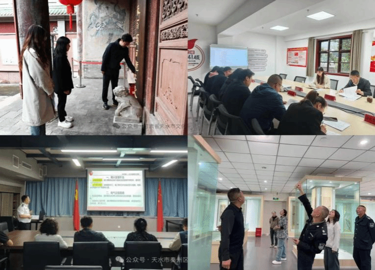 检查工作聚焦重点领域和关键环节,秦州区、麦积区、秦安县、甘谷县、武山县、清水县、张家川县等县区积极组织力量,对辖区内文物建筑、博物馆、纪念馆、施工工地等场所单位进行了深入排查,重点检查消防、安防、用电及施工安全等措施落实情况,对发现的问题隐患及时整改。秦州区博物馆组织开展了全员安全培训与专项安全检查工作,邀请了专业消防人员进行指导,提升了全体职工的安全防范能力和责任意识。天水弘文博物苑、秦州区博物馆对双节期间的开放接待、公众服务、值班值守及应急处置等各项工作进行了周密细致的部署和开展安全检查工作。市博物馆、市文化馆、市美术馆、秦安县博物馆、清水县博物馆等多家对外开放的文物博物馆单位,开展了消防安全专项检查工作,为迎接即将到来的“双节”做好充分准备。