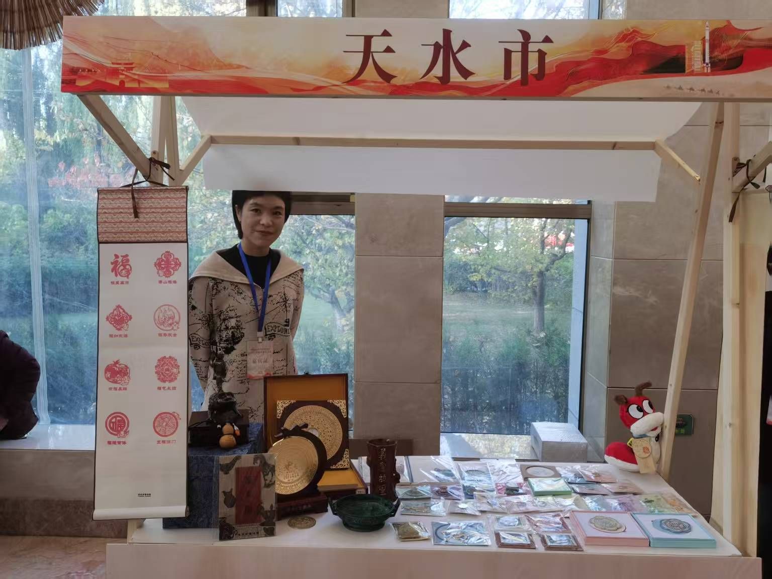 天水市伏羲庙景区推介员戴维嘉在大会上进行了“伏羲文化课堂”研学旅游推介,深度阐述了伏羲庙作为“中华第一庙”所承载的华夏始祖文化内涵,伏羲创画八卦对人类历史和生活的影响,以及伏羲文化对当今世界的影响;结合伏羲文化的影响力,向与会代表推出伏羲庙景区开发的伏羲文化研学旅游产品。同时,在会场上,天水市博物馆展示了50余款特色文创产品。以伏羲文化为灵感的河洛卦牌、龙凤呈祥系列书签与掼蛋扑克牌,兼具文化内涵与实用价值;五行收纳袋、羲皇福宝铜镜等创意好物,将传统文化与现代设计巧妙融合;精美的文创产品吸引众多参会代表挑选购买,通过文创产品展示展销,进一步提升了天水文旅的知名度与影响力。