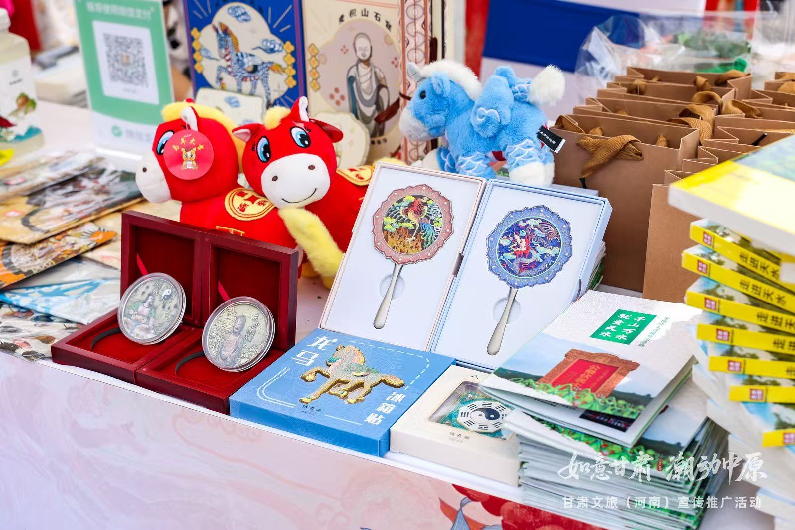 在天水展台,工作人员集中展示了浆水面、浆水果蔬饮料、龙马毛绒挂饰、麦积山“东方微笑”摆件、伏羲庙团龙团凤手持镜、马家塬博物馆文创丝巾、特色冰箱贴等30余种200余件地域特色鲜明的文创产品,发放《走近天水》宣传书籍、宣传册页400余份,吸引广大游客驻足观赏。通过交流,他们加深了对天水历史和文旅资源的了解。多位市民表示,在不久的将来一定要到天水爬石窟、拜伏羲、泡温泉,品尝地道的天水麻辣烫。