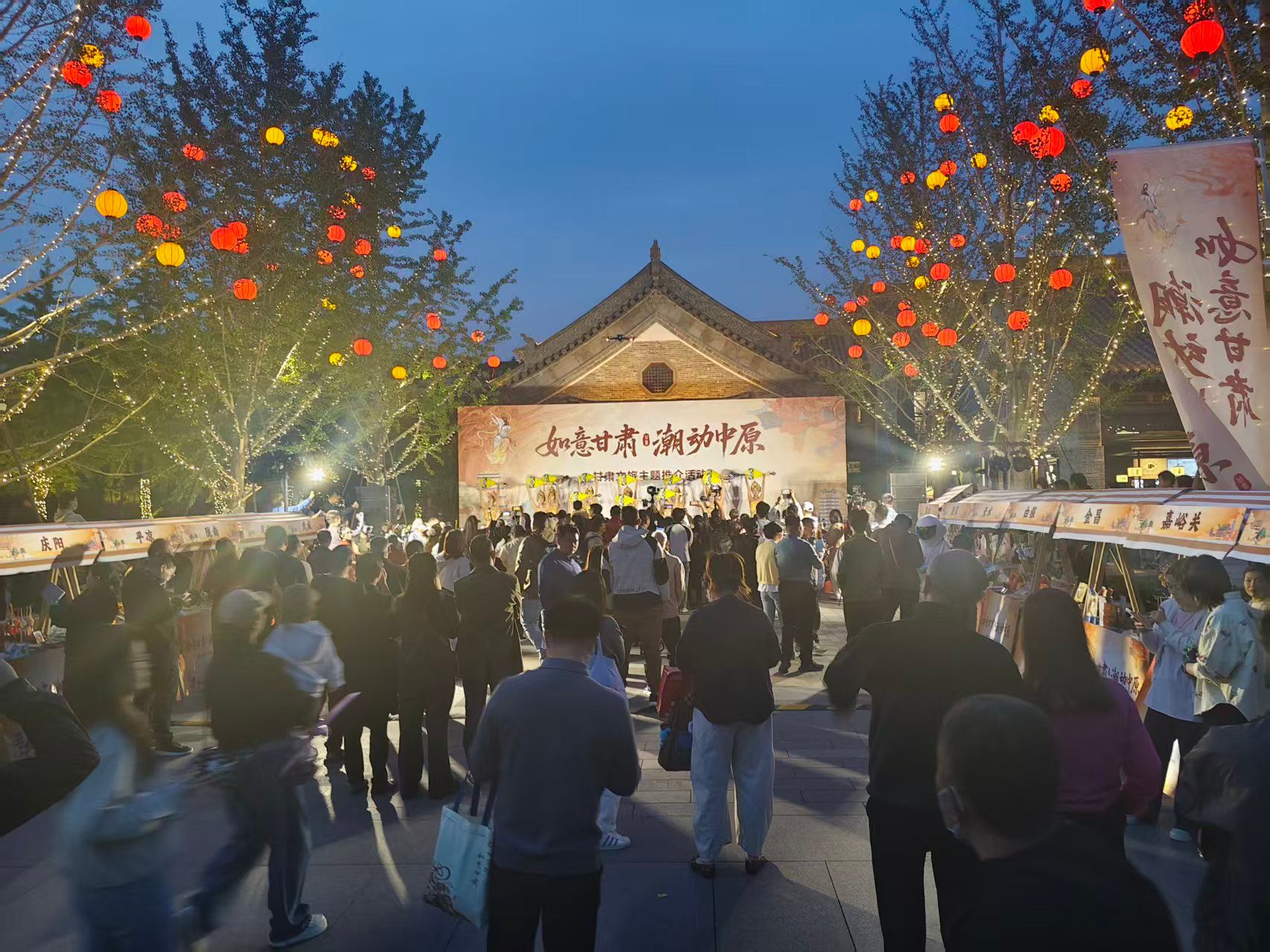当晚,在郑州“亳都·新象”商业街区的甘肃文旅快闪活动,采用轻量化、沉浸式、强互动的快闪推介形式,将甘肃特色文旅资源零距离呈现给郑州市民。在展览展示区域,天水精心准备的团龙团凤纸雕灯、八卦龙图套杯、酥圈圈毛绒玩具、秦安脆瓜毛绒挂饰、益生菌酸菜等具有代表性的天水文创及美食产品,受到广大市民的青睐,纷纷前来围观购买。工作人员化身“文旅推介官”,热情的介绍天水特色文旅资源、产品,发放天水文旅宣传书籍、折页,吸引了众多游客驻足询问,热情参与美食品鉴。