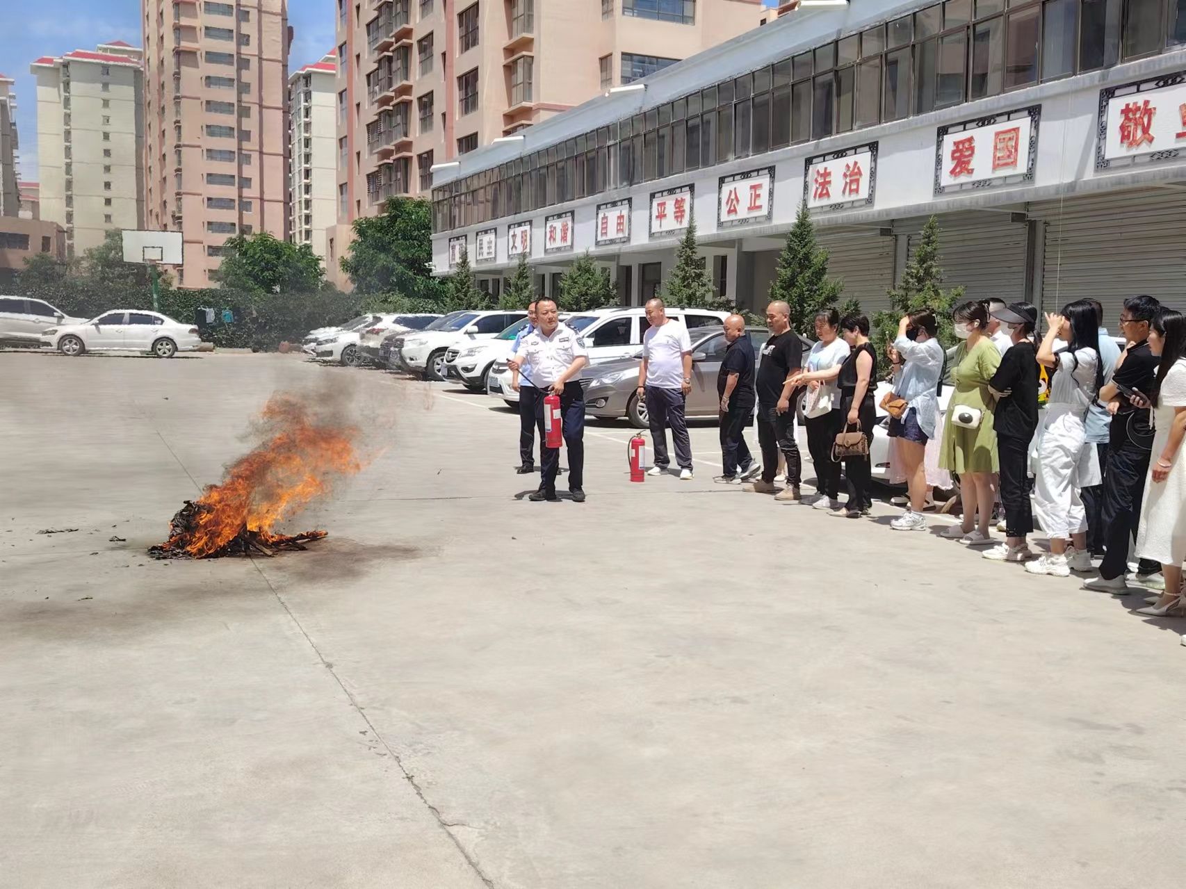 随后,观看了国内近期重大火灾事故等警示教育片。政安消防教官杨剑波进行安全和消防知识培训,并在杨剑波教官的指导下参训人员进行了消防灭火演练。