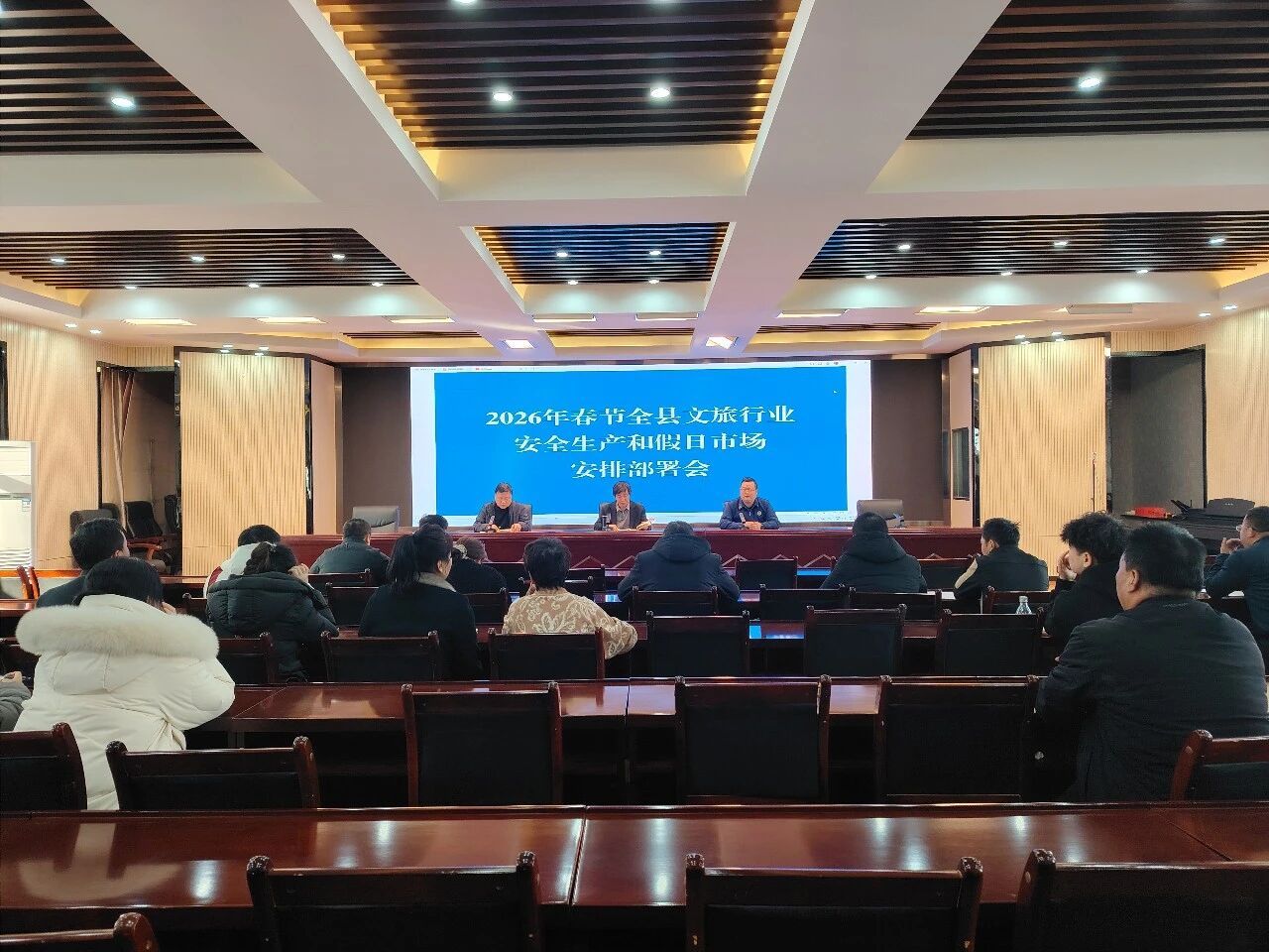 会上传达学习了省文旅厅关于2026年春节全省文旅行业安全生产工作和假日市场调度会议精神,开展了消防安全知识培训,安排部署文旅行业安全生产工作。