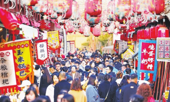 手持一张天水核心景区的门票,游客王英不仅饱览了伏羲庙深厚的文化底蕴,还意外收获了满满惊喜:“天水每年都给我带来‘新意’。刚买完门票就领到了麻辣烫礼包,住宿还能打折。这里的年味,又浓又实惠。”这样的“新意”,彰显了天水文旅产业“以新引客”焕发的蓬勃活力。