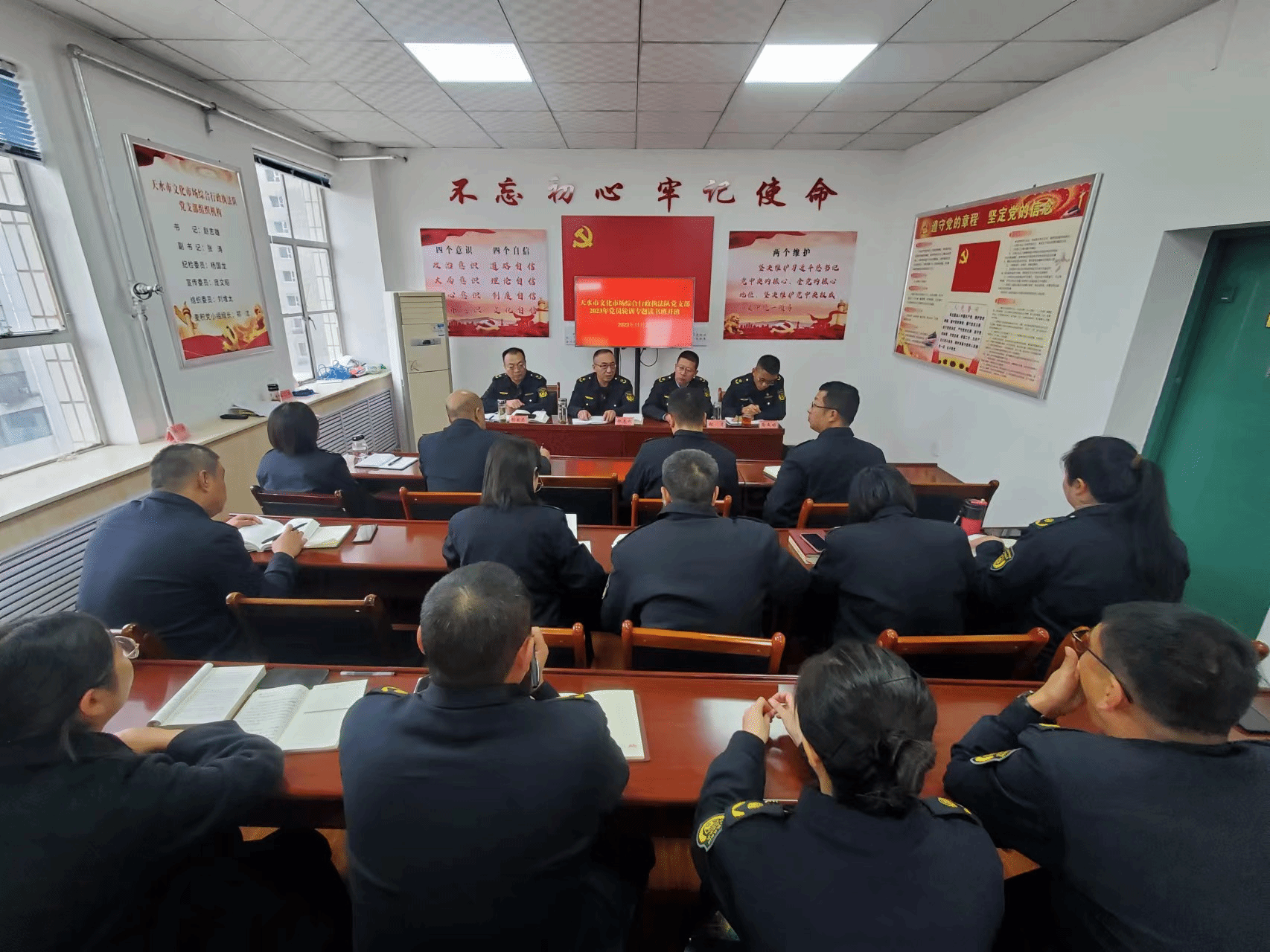 为深入学习贯彻习近平新时代中国特色社会主义思想和党的二十大精神,推动主题教育走深走实,11月20日,天水市文化市场综合行政执法队党支部举办2023年党员轮训专题读书班。