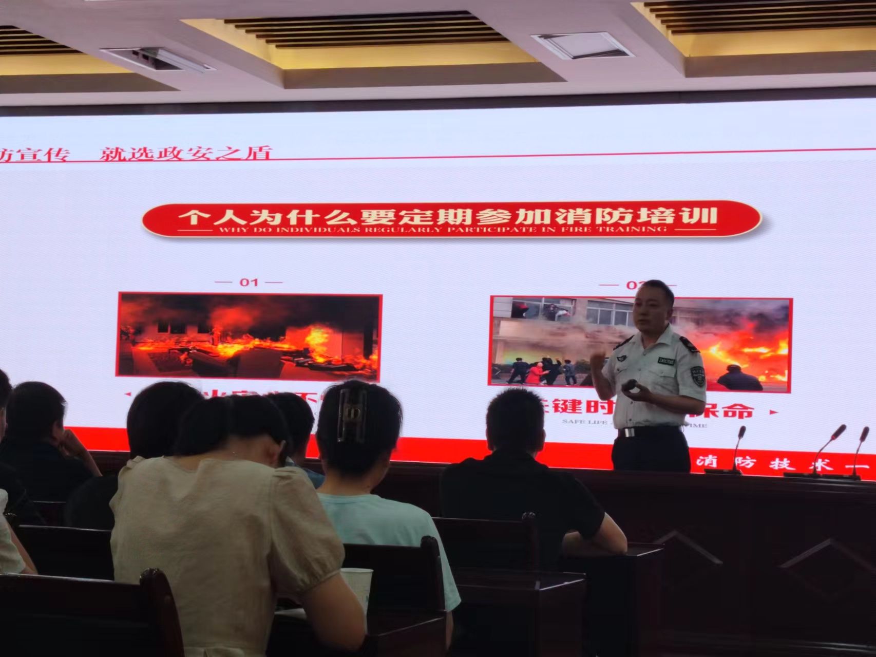 随后,观看了国内近期重大火灾事故等警示教育片。政安消防教官杨剑波进行安全和消防知识培训,并在杨剑波教官的指导下参训人员进行了消防灭火演练。