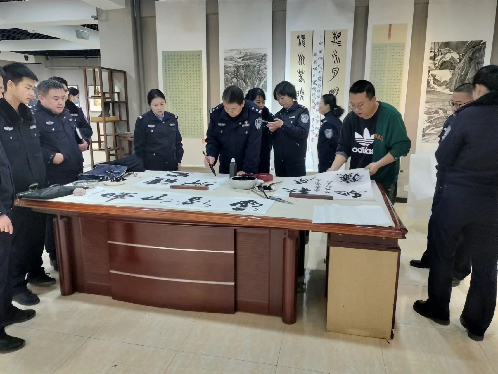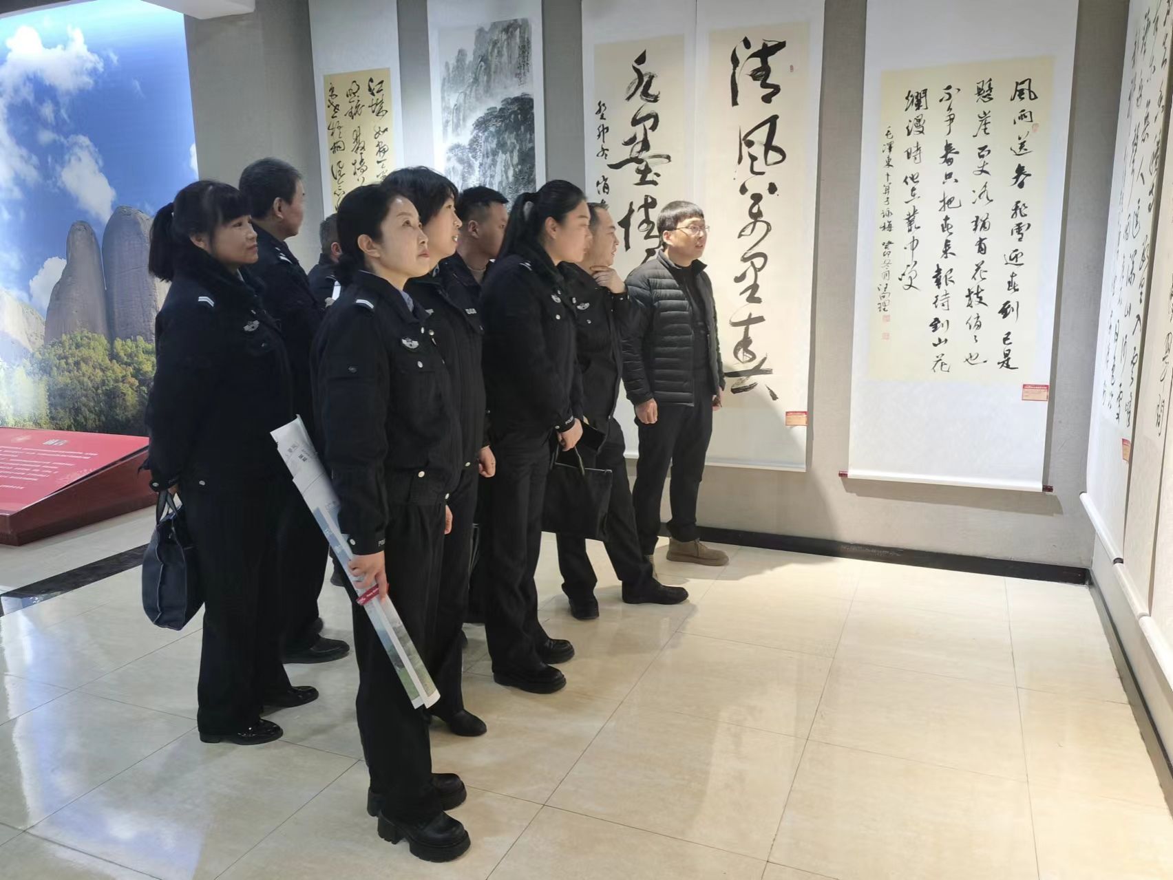 2024年2月27日,县美术馆与武山公安文联联合开展了一场别开生面的书画交流活动。此次活动分为参观展览、笔会和座谈交流三个环节,以书画为媒,加强与警营文化的沟通与联系,促进公安文化建设和社会文化发展,共同为营造和谐稳定的社会环境贡献力量。